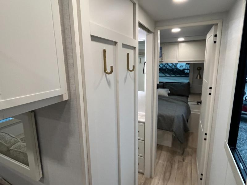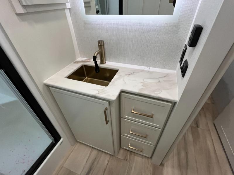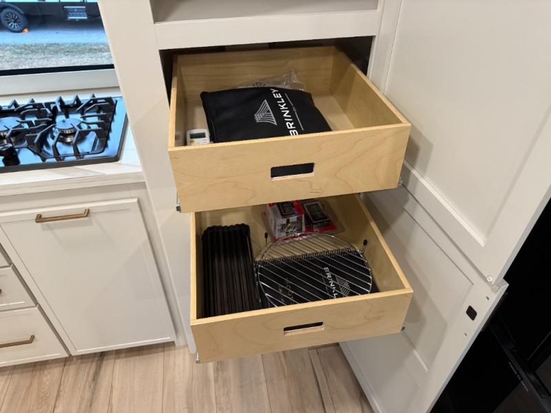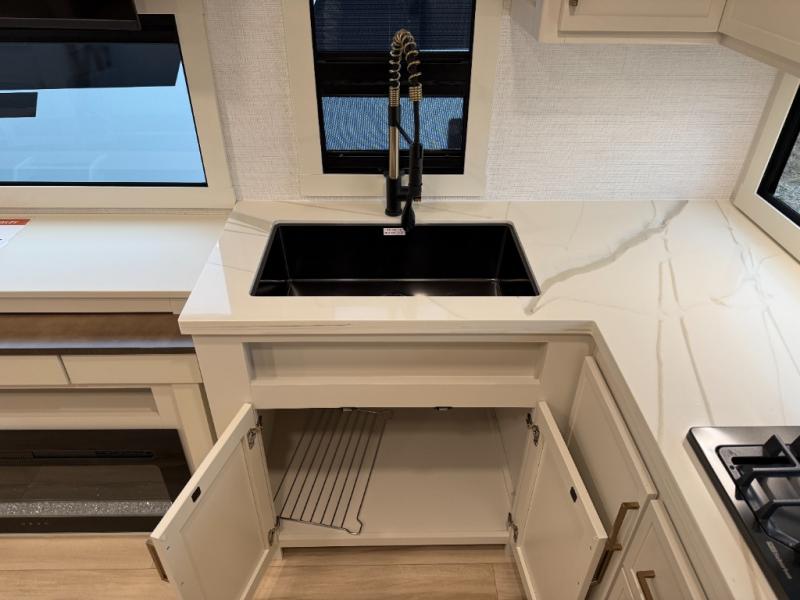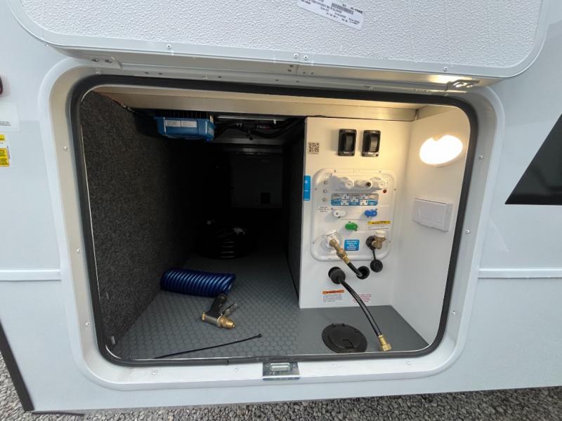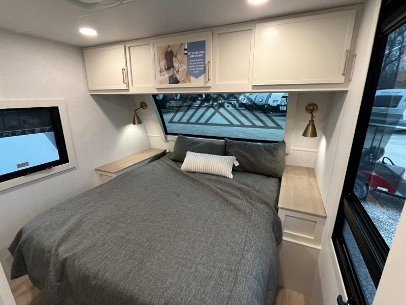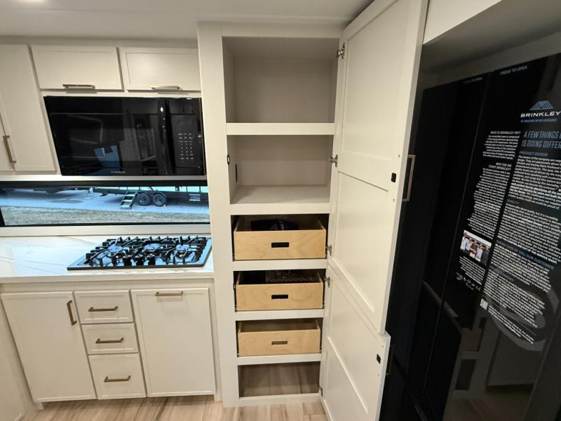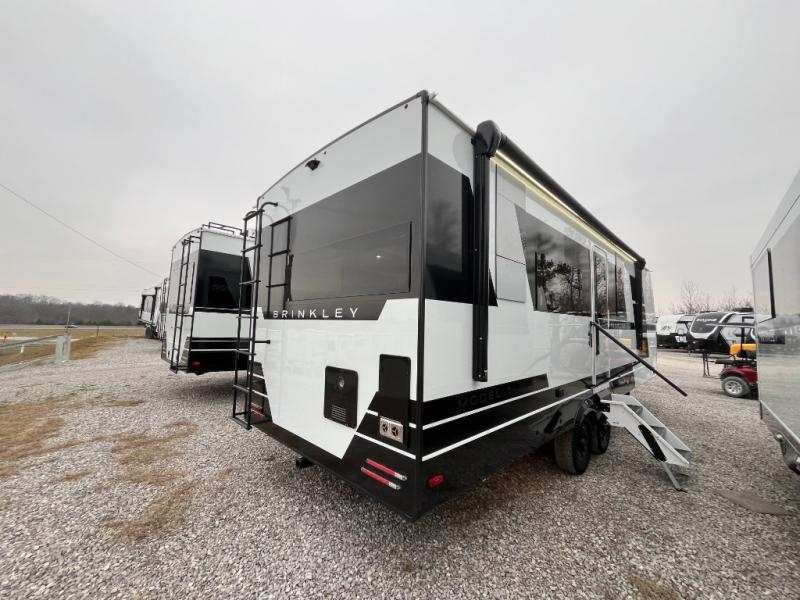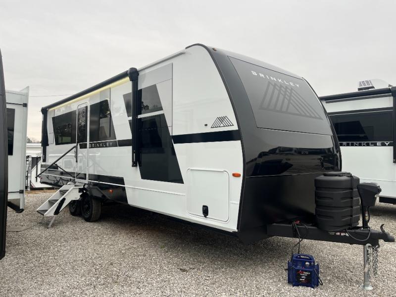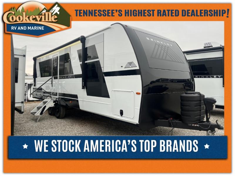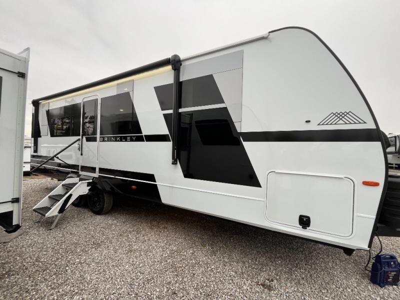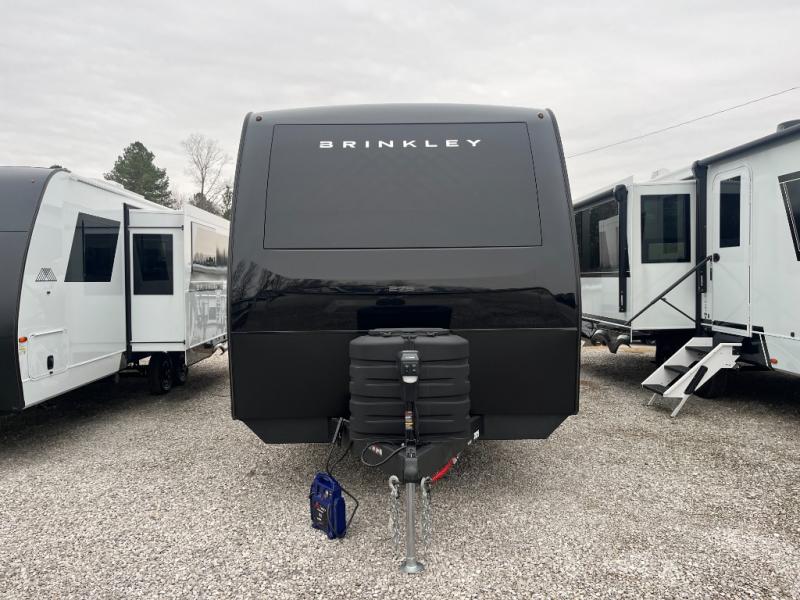 The lightweight Model I travel trailer by Brinkley is the perfect choice for those looking for an easy tow and at-home comforts! There is a drop-frame chassis, high-performance Road Armor suspension equalizer system, and Demco EZ Latch trailer coupler that automatically latches when dropped onto a hitch ball without the need of a safety pin. Additional exterior features include square Euro frameless windows, automotive-grade paint, full-width LED strip lighting in the pass-thru, and a pet & property security campside tie-down to keep your gear and furry friends safe. Inside, you'll be wowed by Brinkley's CraftSense wood trim construction, residential solid surface kitchen countertops, dimmable bedroom lights, and marine-grade neon LED shower lighting to name a few stand-out features!