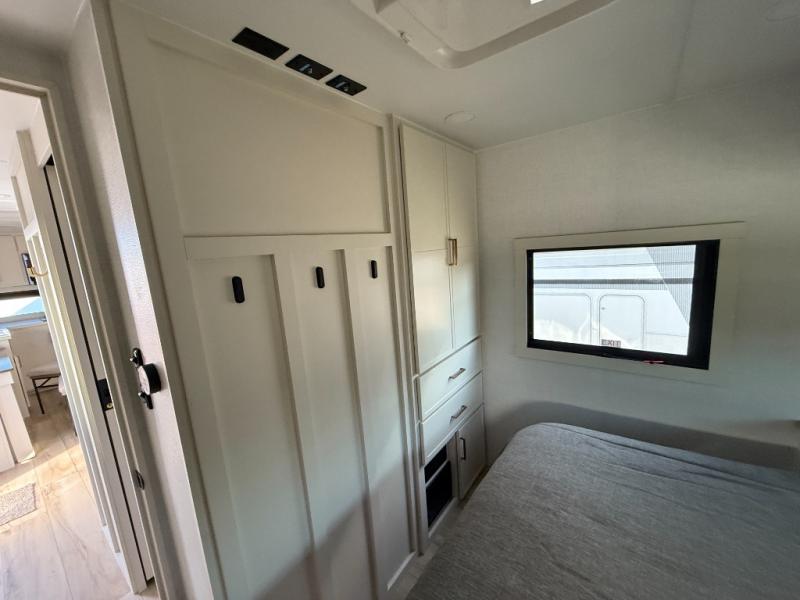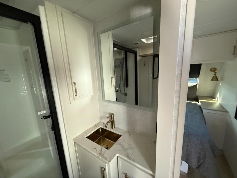 The lightweight Model I travel trailer by Brinkley is the perfect choice for those looking for an easy tow and at-home comforts! There is a drop-frame chassis, high-performance Road Armor suspension equalizer system, and Demco EZ Latch trailer coupler that automatically latches when dropped onto a hitch ball without the need of a safety pin. Additional exterior features include square Euro frameless windows, automotive-grade paint, full-width LED strip lighting in the pass-thru, and a pet & property security campside tie-down to keep your gear and furry friends safe. Inside, you'll be wowed by Brinkley's CraftSense wood trim construction, residential solid surface kitchen countertops, dimmable bedroom lights, and marine-grade neon LED shower lighting to name a few stand-out features!