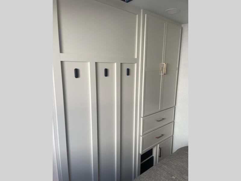 The lightweight Model I travel trailer by Brinkley is the perfect choice for those looking for an easy tow and at-home comforts! There is a drop-frame chassis, high-performance Road Armor suspension equalizer system, and Demco EZ Latch trailer coupler that automatically latches when dropped onto a hitch ball without the need of a safety pin. Additional exterior features include square Euro frameless windows, automotive-grade paint, full-width LED strip lighting in the pass-thru, and a pet & property security campside tie-down to keep your gear and furry friends safe. Inside, you'll be wowed by Brinkley's CraftSense wood trim construction, residential solid surface kitchen countertops, dimmable bedroom lights, and marine-grade neon LED shower lighting to name a few stand-out features!