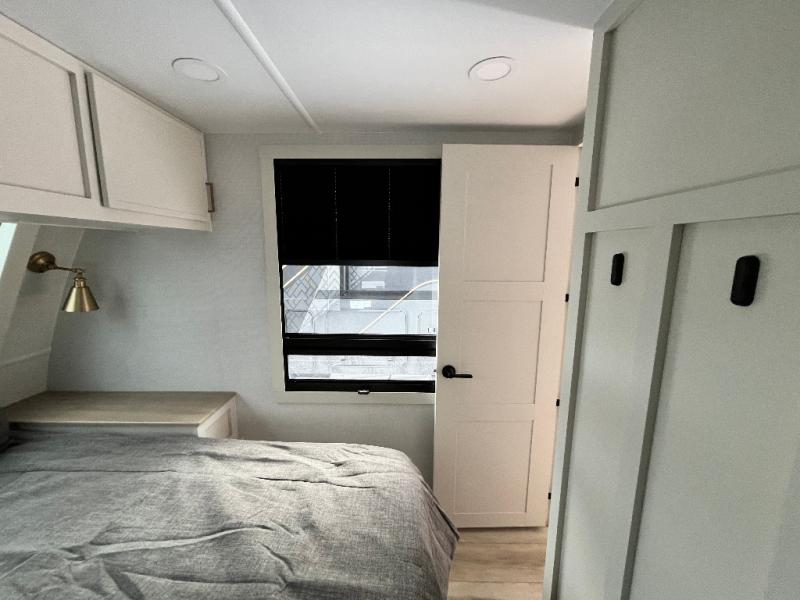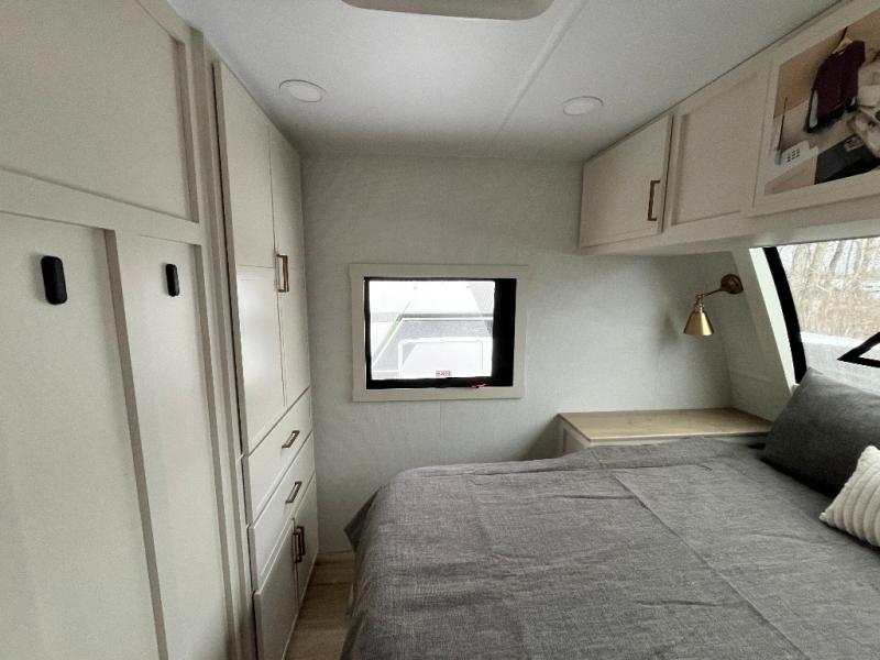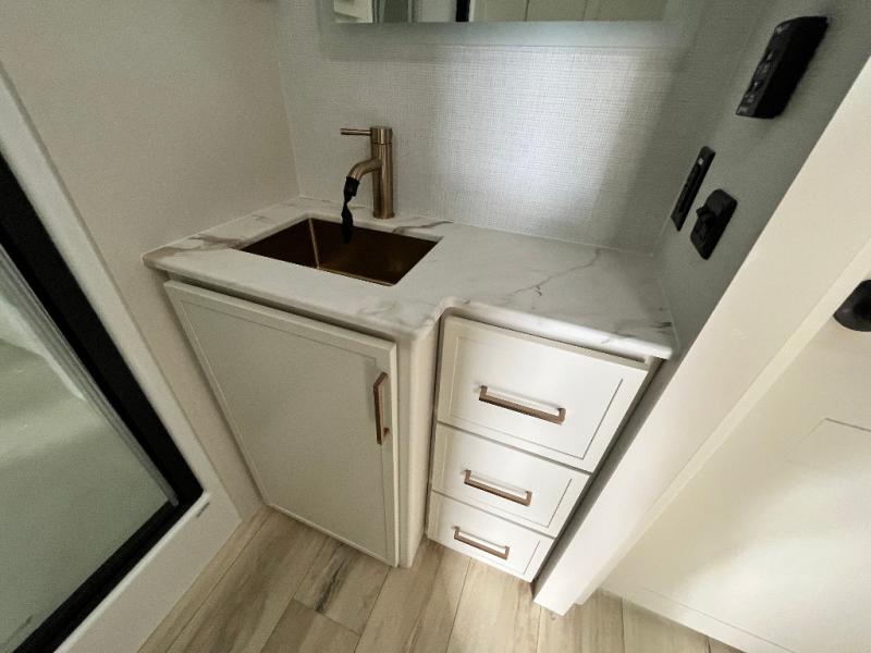 The lightweight Model I travel trailer by Brinkley is the perfect choice for those looking for an easy tow and at-home comforts! There is a drop-frame chassis, high-performance Road Armor suspension equalizer system, and Demco EZ Latch trailer coupler that automatically latches when dropped onto a hitch ball without the need of a safety pin. Additional exterior features include square Euro frameless windows, automotive-grade paint, full-width LED strip lighting in the pass-thru, and a pet & property security campside tie-down to keep your gear and furry friends safe. Inside, you'll be wowed by Brinkley's CraftSense wood trim construction, residential solid surface kitchen countertops, dimmable bedroom lights, and marine-grade neon LED shower lighting to name a few stand-out features!