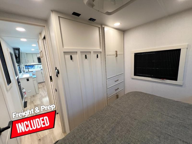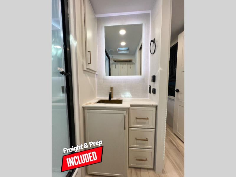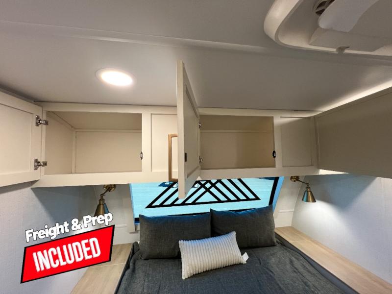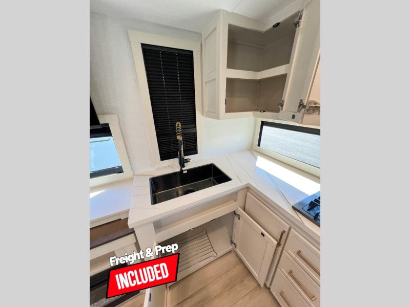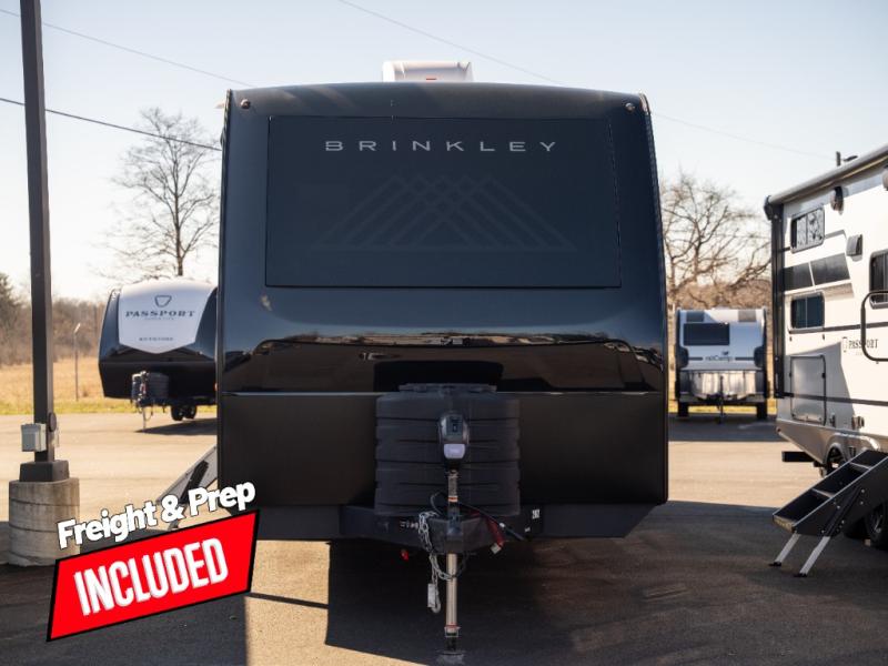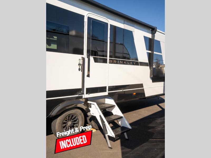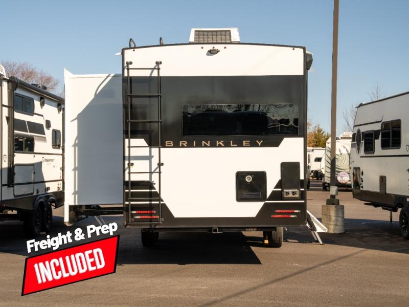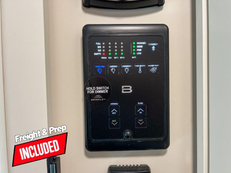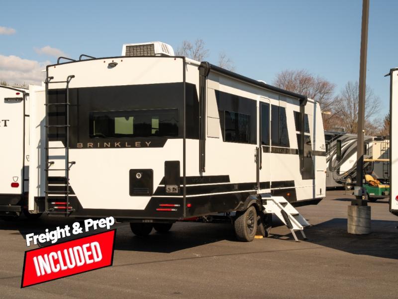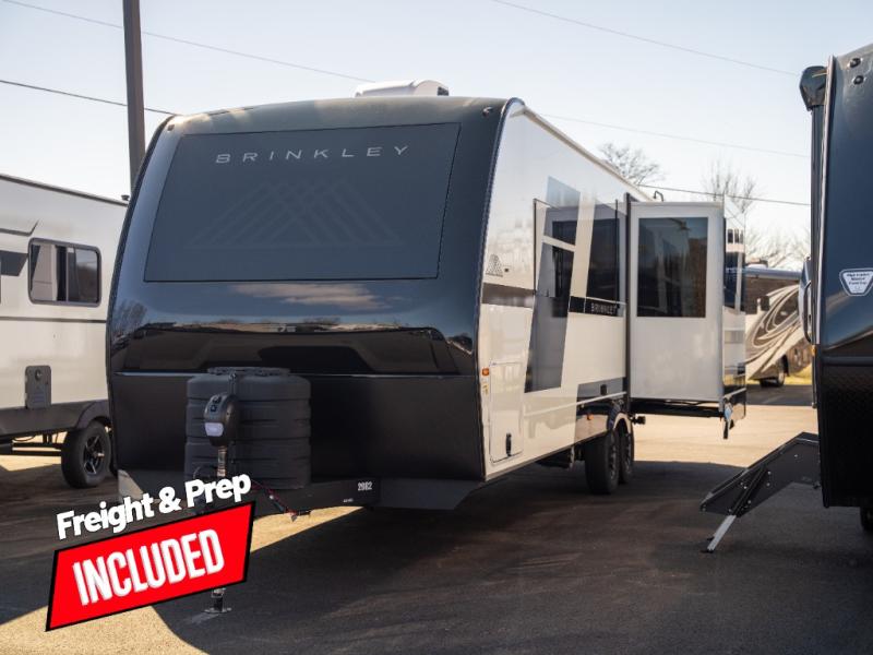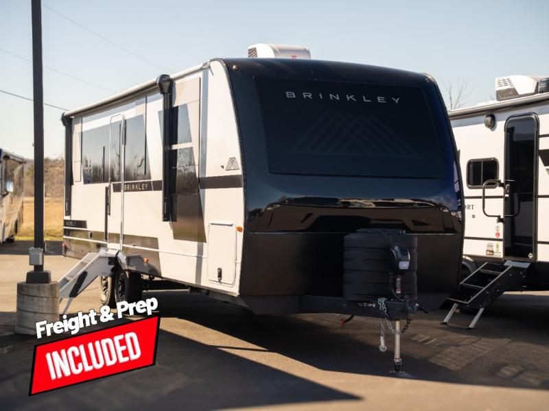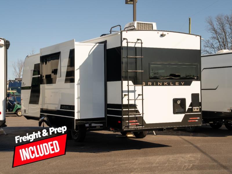 The lightweight Model I travel trailer by Brinkley is the perfect choice for those looking for an easy tow and at-home comforts! There is a drop-frame chassis, high-performance Road Armor suspension equalizer system, and Demco EZ Latch trailer coupler that automatically latches when dropped onto a hitch ball without the need of a safety pin. Additional exterior features include square Euro frameless windows, automotive-grade paint, full-width LED strip lighting in the pass-thru, and a pet & property security campside tie-down to keep your gear and furry friends safe. Inside, you'll be wowed by Brinkley's CraftSense wood trim construction, residential solid surface kitchen countertops, dimmable bedroom lights, and marine-grade neon LED shower lighting to name a few stand-out features!