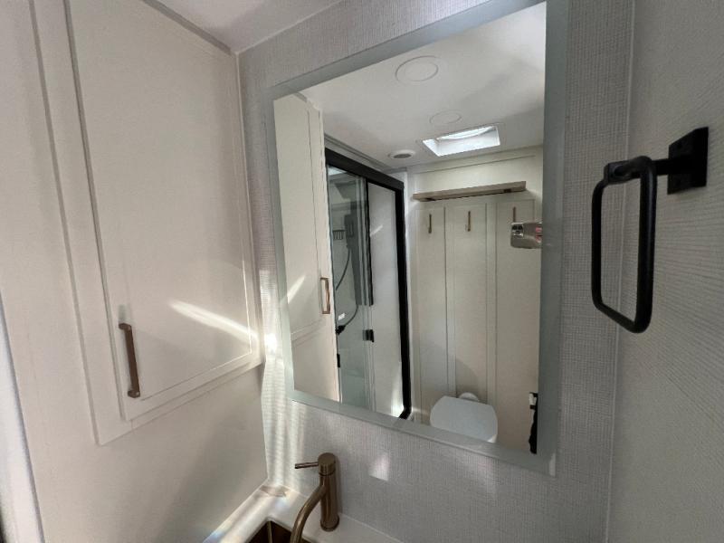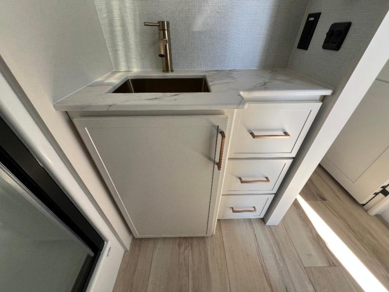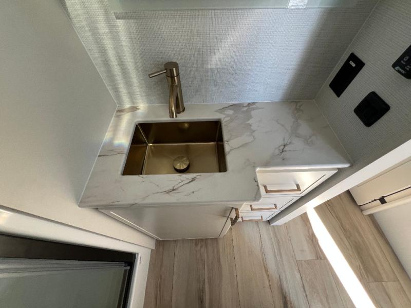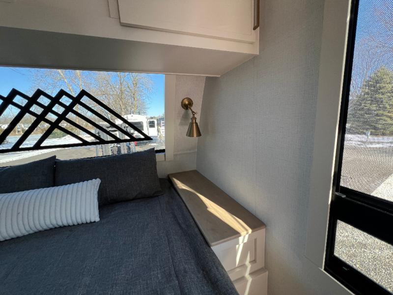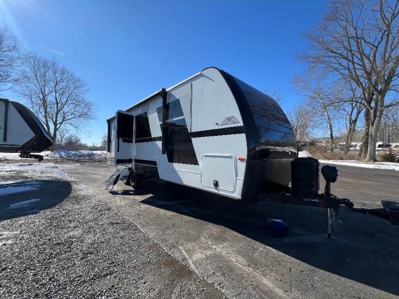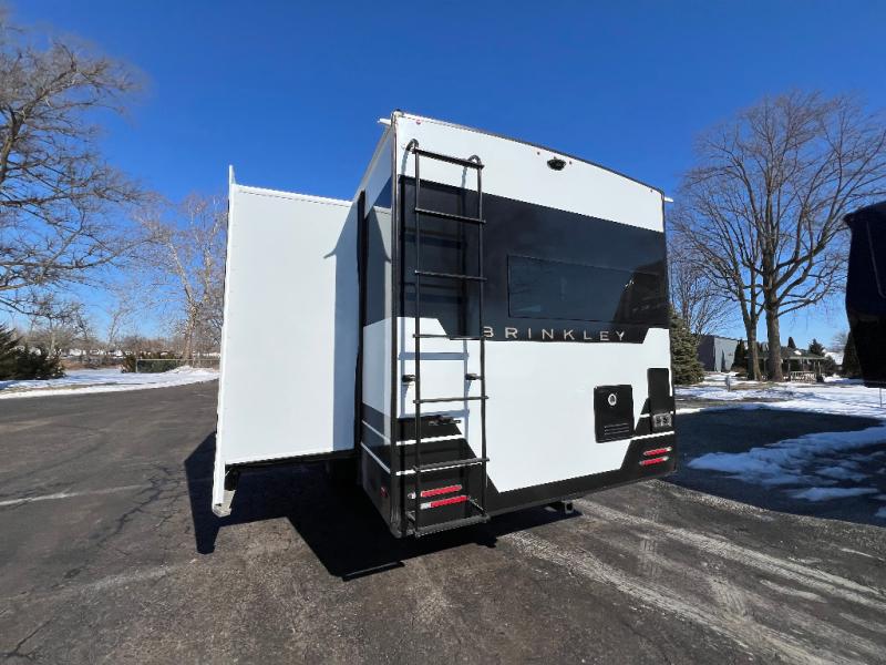 The lightweight Model I travel trailer by Brinkley is the perfect choice for those looking for an easy tow and at-home comforts! There is a drop-frame chassis, high-performance Road Armor suspension equalizer system, and Demco EZ Latch trailer coupler that automatically latches when dropped onto a hitch ball without the need of a safety pin. Additional exterior features include square Euro frameless windows, automotive-grade paint, full-width LED strip lighting in the pass-thru, and a pet & property security campside tie-down to keep your gear and furry friends safe. Inside, you'll be wowed by Brinkley's CraftSense wood trim construction, residential solid surface kitchen countertops, dimmable bedroom lights, and marine-grade neon LED shower lighting to name a few stand-out features!