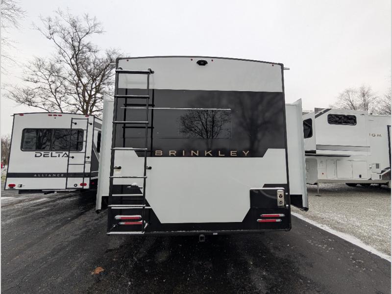 The lightweight Model I travel trailer by Brinkley is the perfect choice for those looking for an easy tow and at-home comforts! There is a drop-frame chassis, high-performance Road Armor suspension equalizer system, and Demco EZ Latch trailer coupler that automatically latches when dropped onto a hitch ball without the need of a safety pin. Additional exterior features include square Euro frameless windows, automotive-grade paint, full-width LED strip lighting in the pass-thru, and a pet & property security campside tie-down to keep your gear and furry friends safe. Inside, you'll be wowed by Brinkley's CraftSense wood trim construction, residential solid surface kitchen countertops, dimmable bedroom lights, and marine-grade neon LED shower lighting to name a few stand-out features!