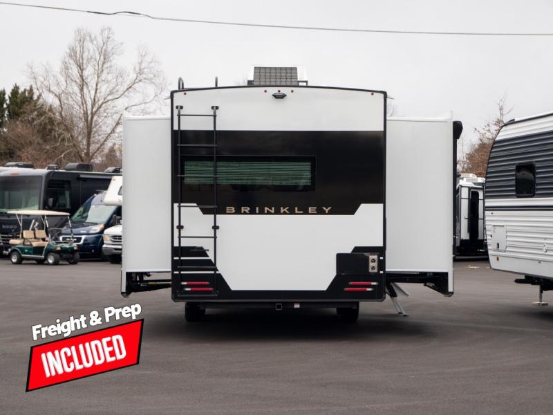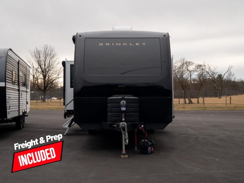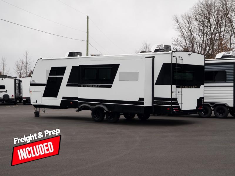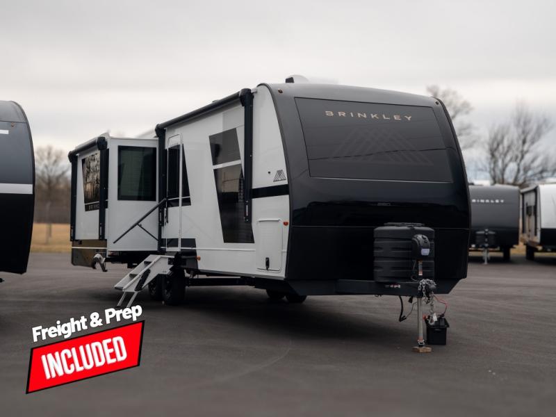 The lightweight Model I travel trailer by Brinkley is the perfect choice for those looking for an easy tow and at-home comforts! There is a drop-frame chassis, high-performance Road Armor suspension equalizer system, and Demco EZ Latch trailer coupler that automatically latches when dropped onto a hitch ball without the need of a safety pin. Additional exterior features include square Euro frameless windows, automotive-grade paint, full-width LED strip lighting in the pass-thru, and a pet & property security campside tie-down to keep your gear and furry friends safe. Inside, you'll be wowed by Brinkley's CraftSense wood trim construction, residential solid surface kitchen countertops, dimmable bedroom lights, and marine-grade neon LED shower lighting to name a few stand-out features!