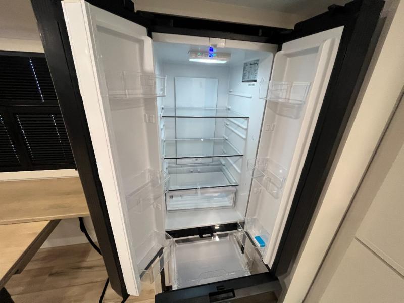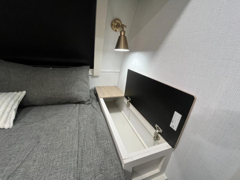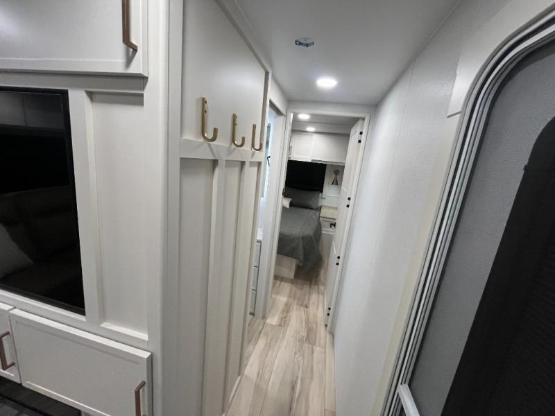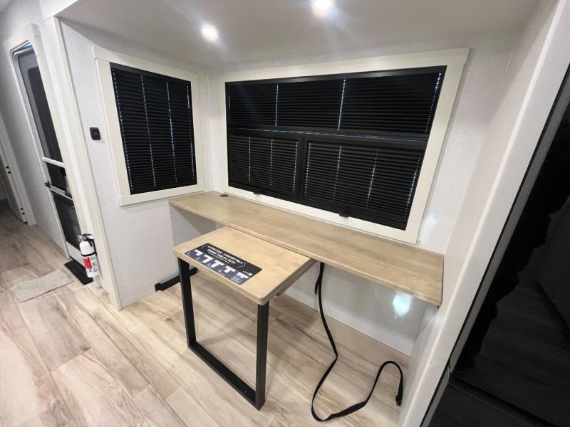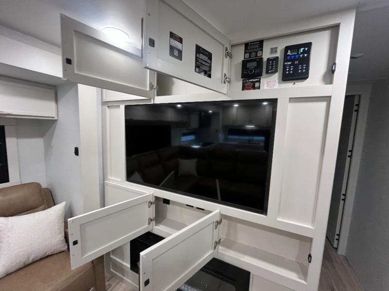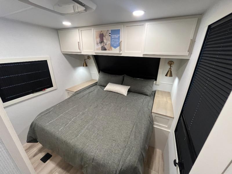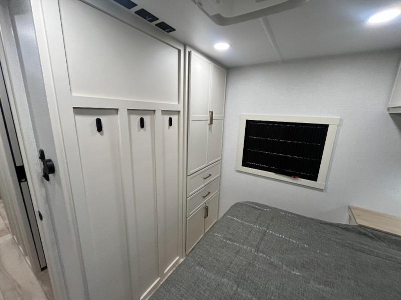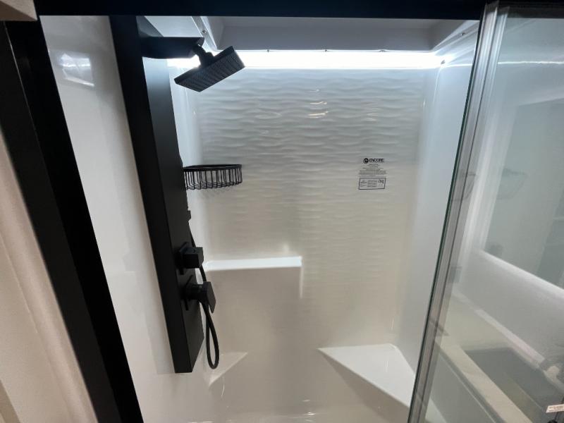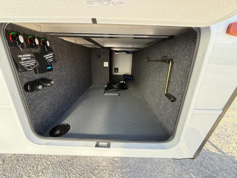 Savor the joy of cooking and sharing meals with loved ones in this beautifully appointed kitchen! This rear kitchen features a spacious pantry with drawers and outlets, a 30" convection microwave, a flip-up counter, and a 12V refrigerator. The convertible dining table and L-desk create a refined space for meals, work, and relaxation. The adjacent L-sofa forms a cozy sanctuary for reading, socializing, or enjoying the entertainment center and fireplace. There is a full bathroom with everything you need to keep your personal hygiene on the road. Plus, the front bedroom’s peaceful haven features a plush king bed, nightstands with storage, and a MaxSpace split-level wardrobe. Additionally, the two exterior awnings create a spacious outdoor living area, ideal for relaxing, entertaining, or enjoying the great outdoors.