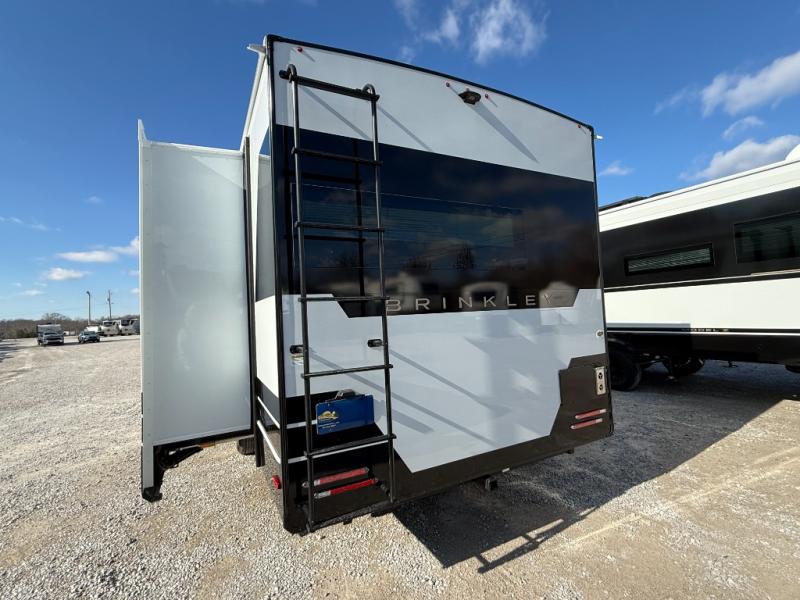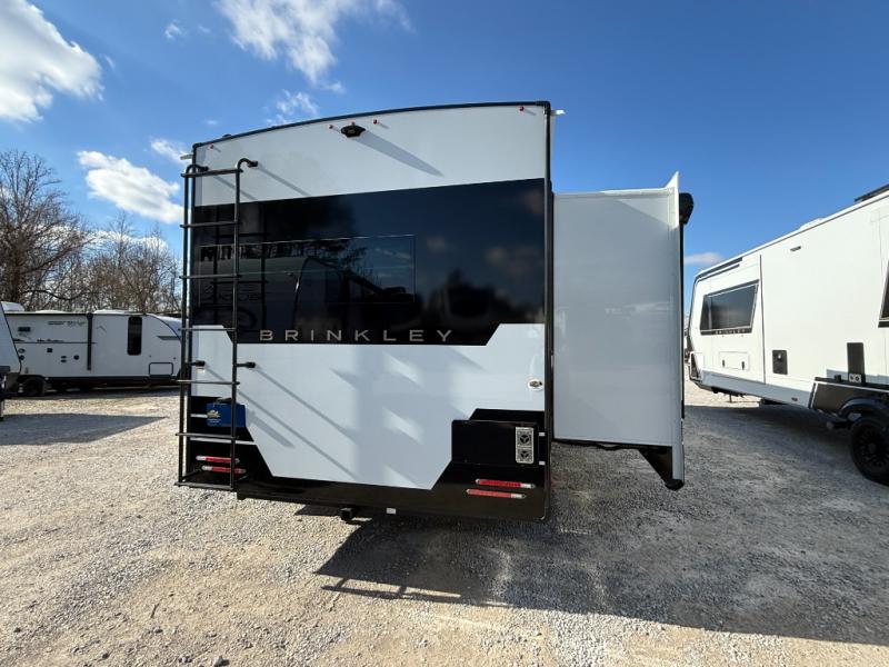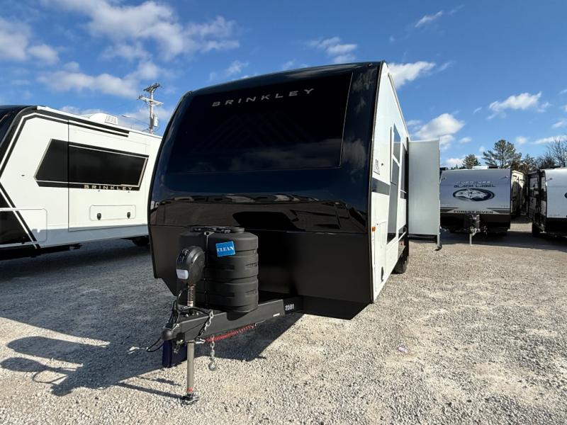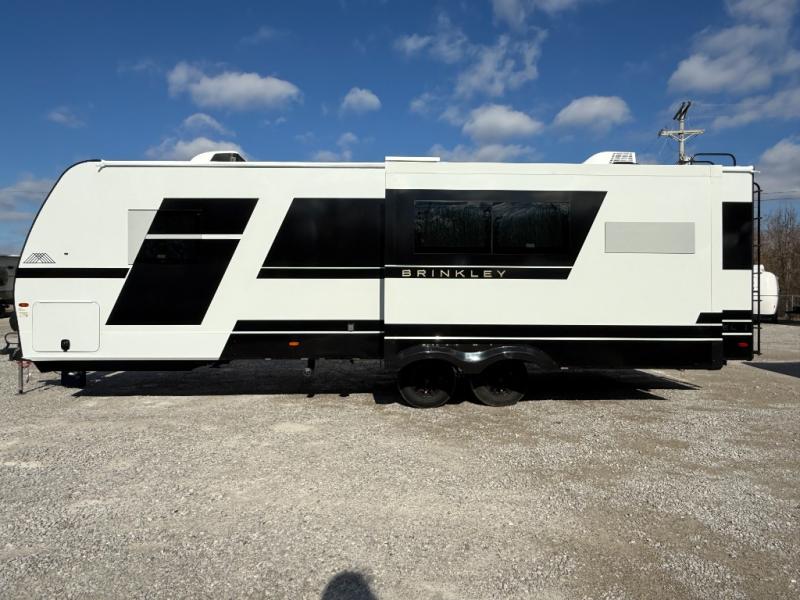 The lightweight Model I travel trailer by Brinkley is the perfect choice for those looking for an easy tow and at-home comforts! There is a drop-frame chassis, high-performance Road Armor suspension equalizer system, and Demco EZ Latch trailer coupler that automatically latches when dropped onto a hitch ball without the need of a safety pin. Additional exterior features include square Euro frameless windows, automotive-grade paint, full-width LED strip lighting in the pass-thru, and a pet & property security campside tie-down to keep your gear and furry friends safe. Inside, you'll be wowed by Brinkley's CraftSense wood trim construction, residential solid surface kitchen countertops, dimmable bedroom lights, and marine-grade neon LED shower lighting to name a few stand-out features!