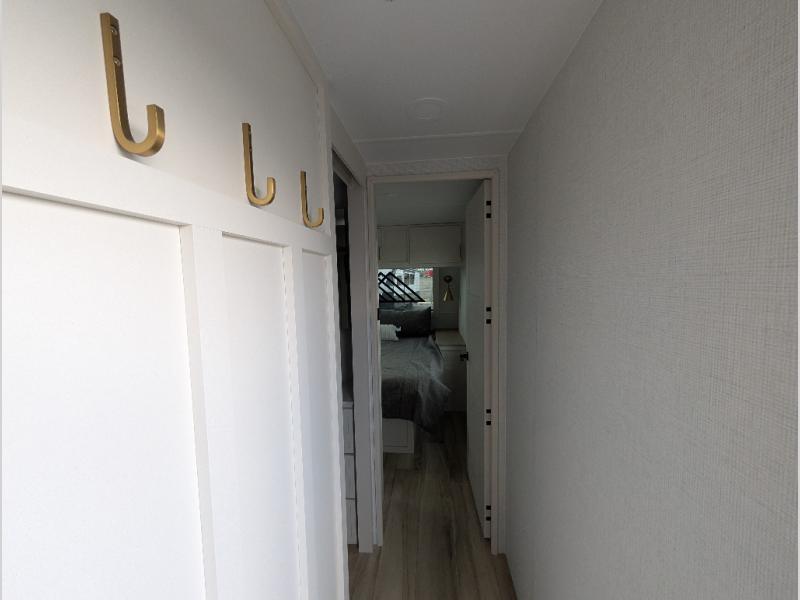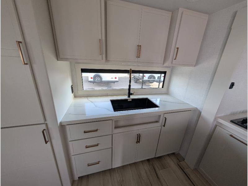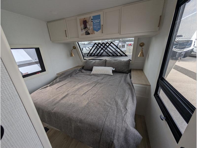 The lightweight Model I travel trailer by Brinkley is the perfect choice for those looking for an easy tow and at-home comforts! There is a drop-frame chassis, high-performance Road Armor suspension equalizer system, and Demco EZ Latch trailer coupler that automatically latches when dropped onto a hitch ball without the need of a safety pin. Additional exterior features include square Euro frameless windows, automotive-grade paint, full-width LED strip lighting in the pass-thru, and a pet & property security campside tie-down to keep your gear and furry friends safe. Inside, you'll be wowed by Brinkley's CraftSense wood trim construction, residential solid surface kitchen countertops, dimmable bedroom lights, and marine-grade neon LED shower lighting to name a few stand-out features!
