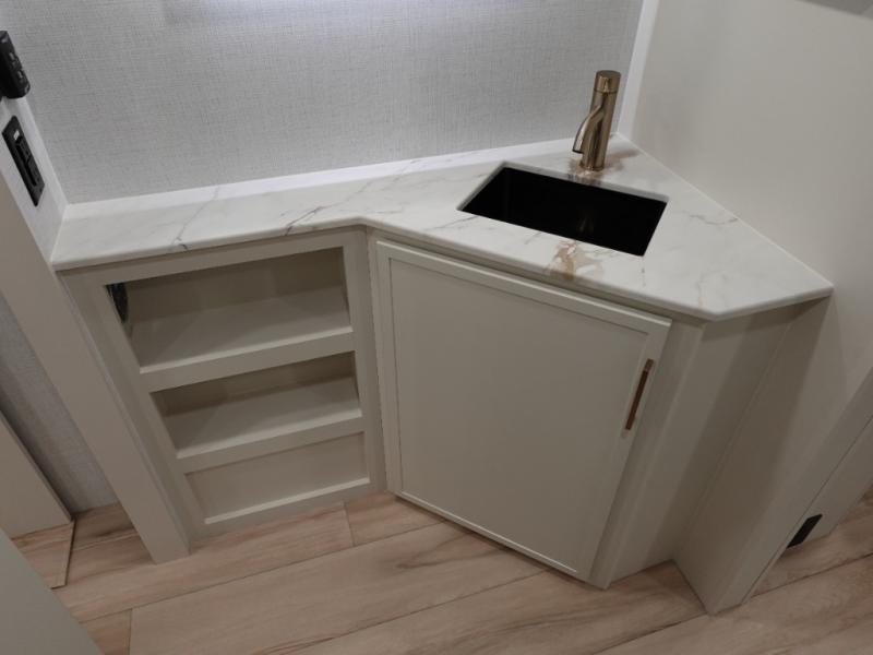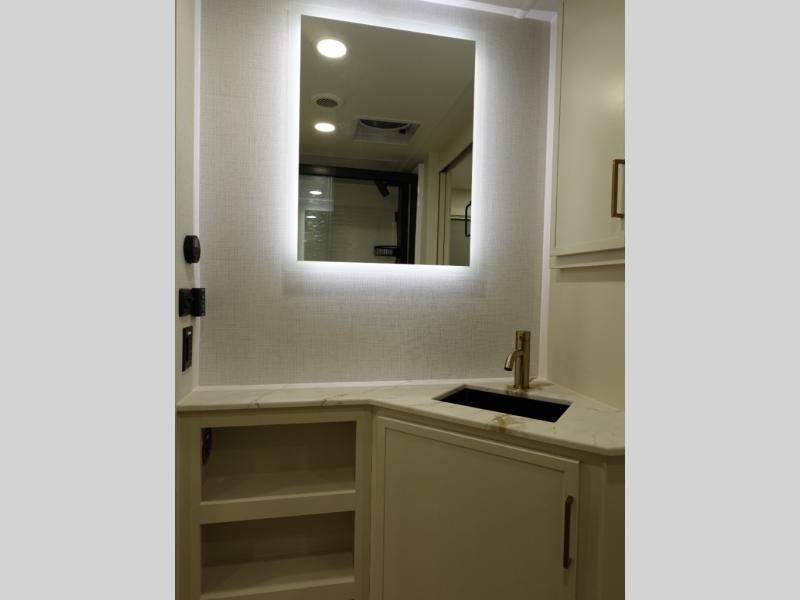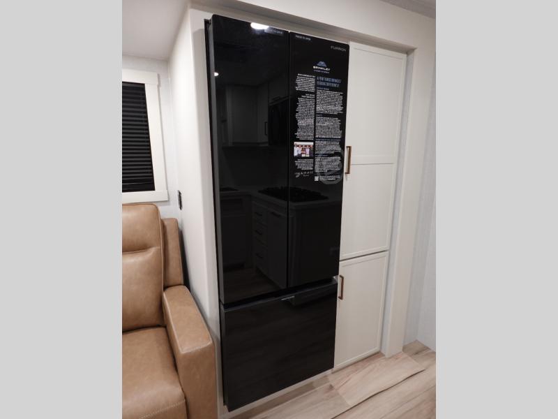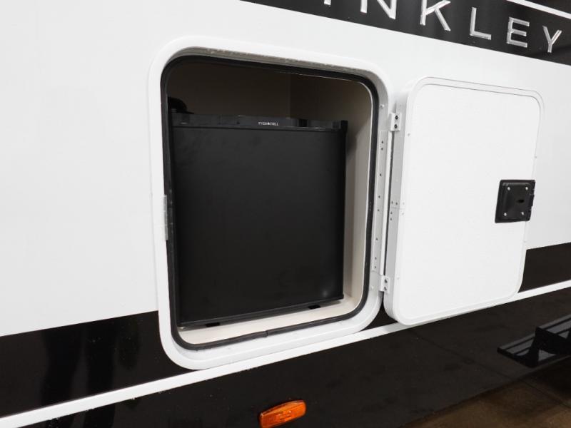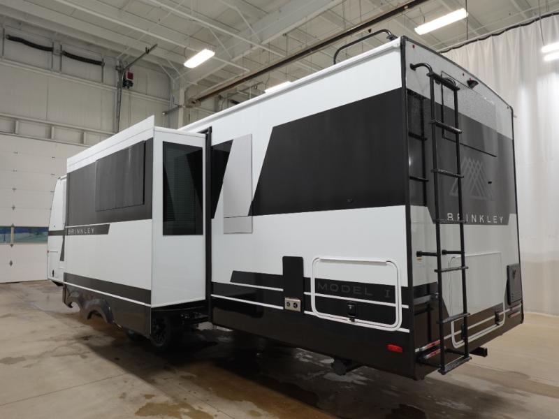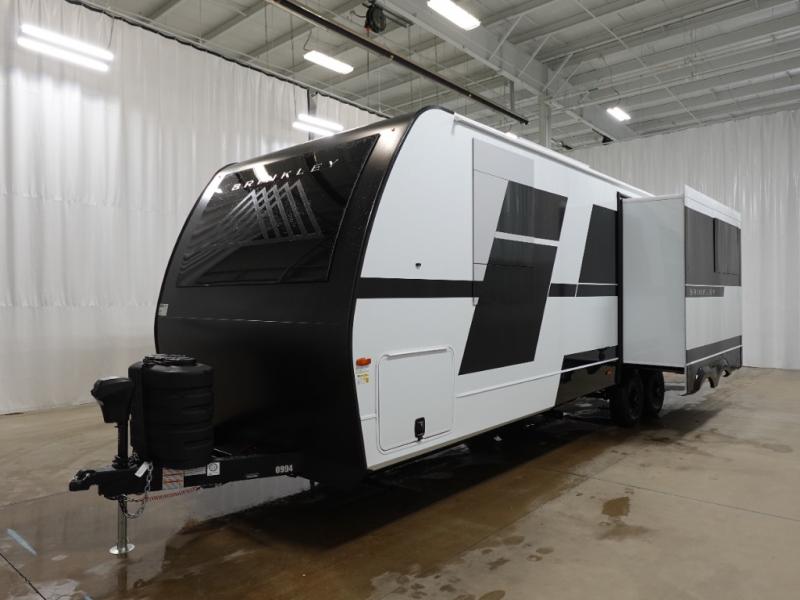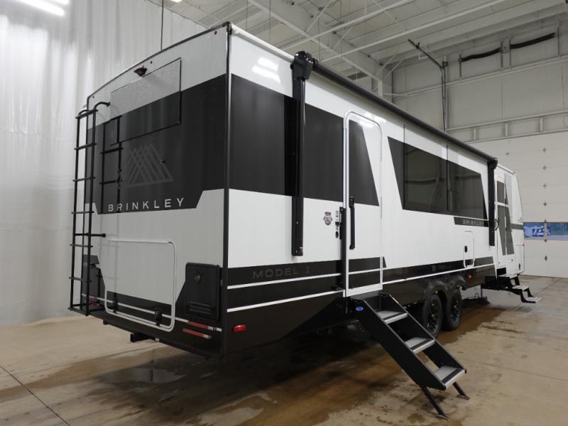 The lightweight Model I travel trailer by Brinkley is the perfect choice for those looking for an easy tow and at-home comforts! There is a drop-frame chassis, high-performance Road Armor suspension equalizer system, and Demco EZ Latch trailer coupler that automatically latches when dropped onto a hitch ball without the need of a safety pin. Additional exterior features include square Euro frameless windows, automotive-grade paint, full-width LED strip lighting in the pass-thru, and a pet & property security campside tie-down to keep your gear and furry friends safe. Inside, you'll be wowed by Brinkley's CraftSense wood trim construction, residential solid surface kitchen countertops, dimmable bedroom lights, and marine-grade neon LED shower lighting to name a few stand-out features!