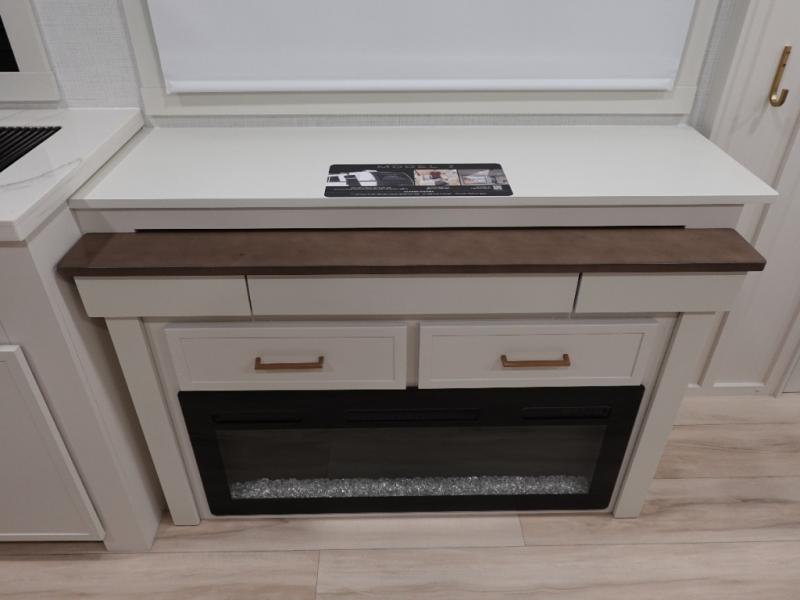 Grab the whole gang and head to the campground in this bunkhouse travel trailer! The 48" x 74" bunks can sleep two to four, and there is a floor to ceiling storage cabinet with drawers, a top bunk window, outlets and USB ports, plus double space-saving pocket doors. Up front you'll find the master bedroom with a 66" x 80" king bed and a MaxSpace Split-Level Wardrobe, TV prep, your own exterior entry door, plus quick access to the walk-thru bath. Everyone can meet in the combined kitchen and living room to relax on the theater seating or tri-fold sofa, and there is pull-out dining table with a drawer and a window above for great outdoor views. The outside is just as accommodating as the inside with its exterior speakers, LED chassis lighting, rear storage compartment with dual access doors, and exterior 12V refrigerator for cold drinks!