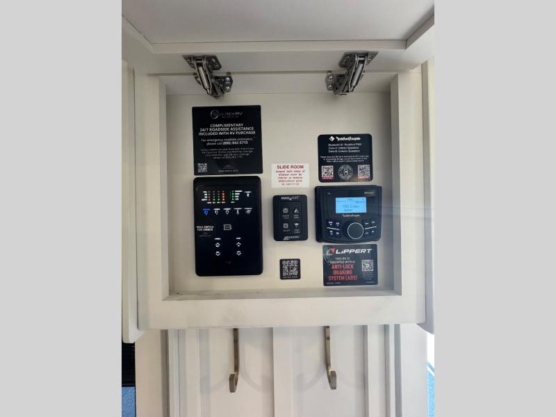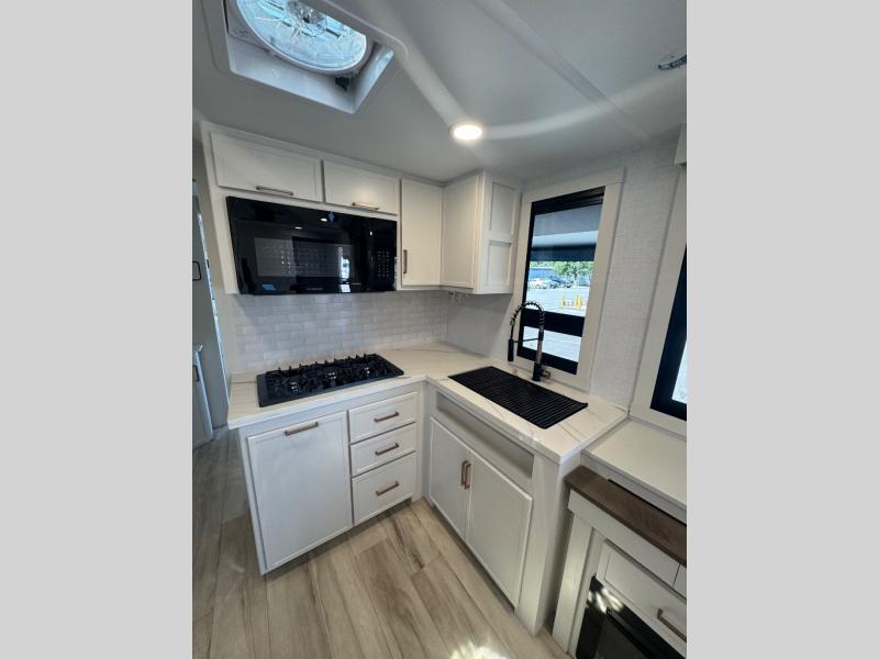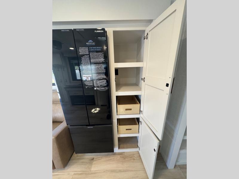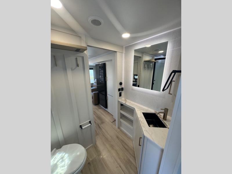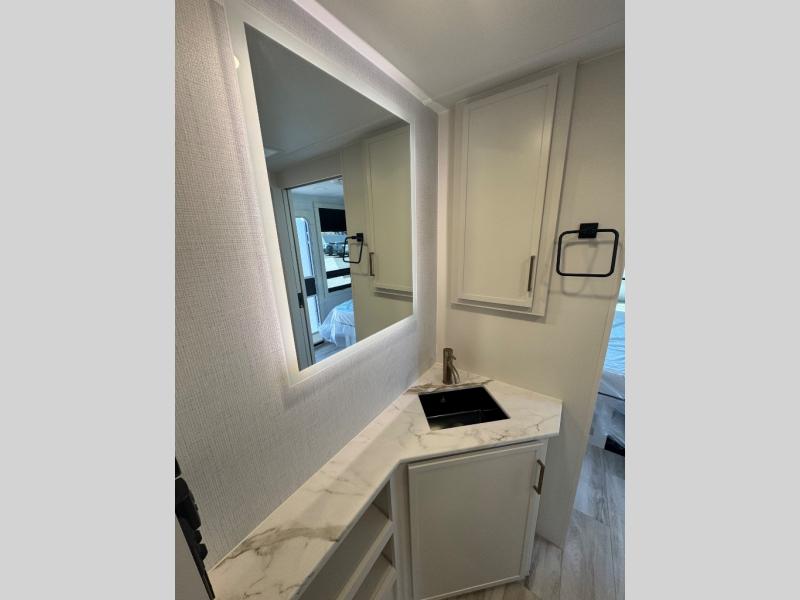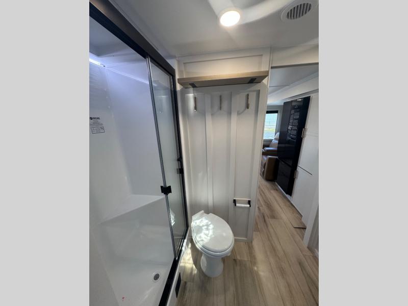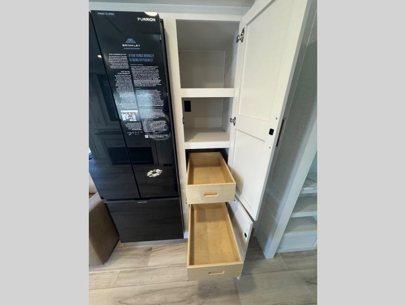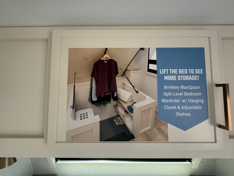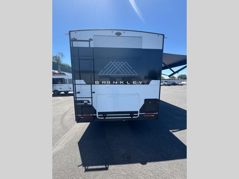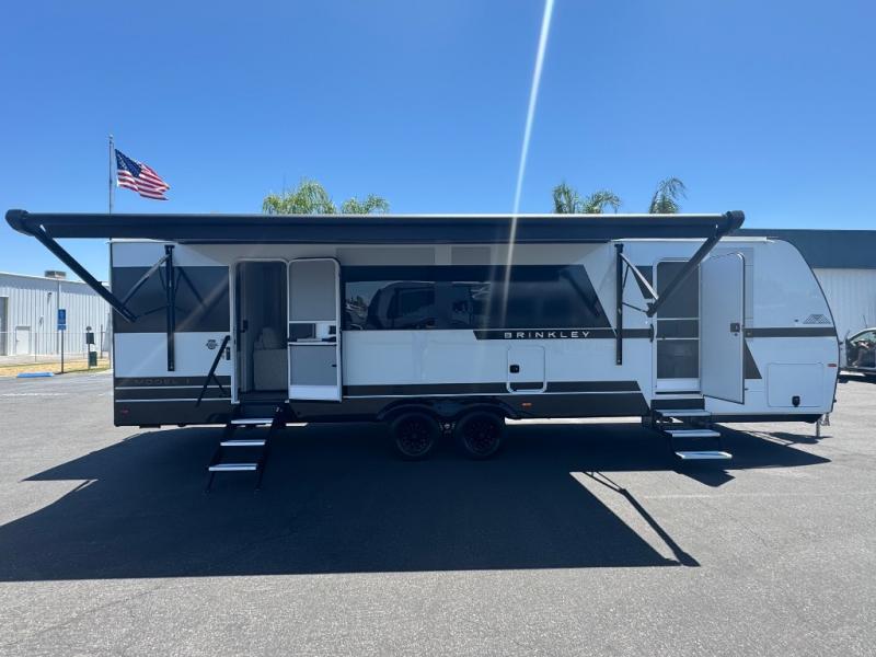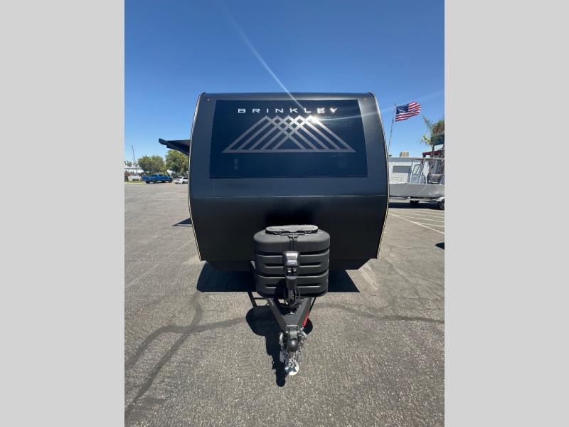 The lightweight Model I travel trailer by Brinkley is the perfect choice for those looking for an easy tow and at-home comforts! There is a drop-frame chassis, high-performance Road Armor suspension equalizer system, and Demco EZ Latch trailer coupler that automatically latches when dropped onto a hitch ball without the need of a safety pin. Additional exterior features include square Euro frameless windows, automotive-grade paint, full-width LED strip lighting in the pass-thru, and a pet & property security campside tie-down to keep your gear and furry friends safe. Inside, you'll be wowed by Brinkley's CraftSense wood trim construction, residential solid surface kitchen countertops, dimmable bedroom lights, and marine-grade neon LED shower lighting to name a few stand-out features!