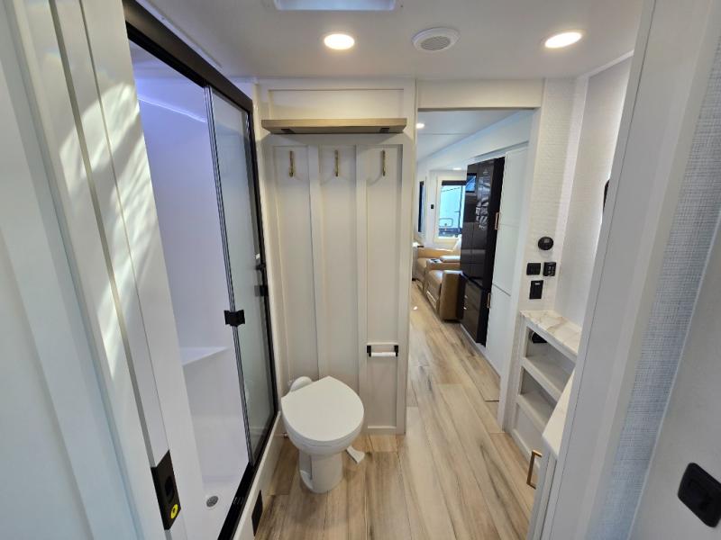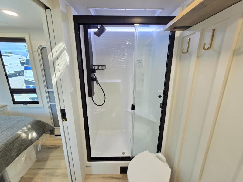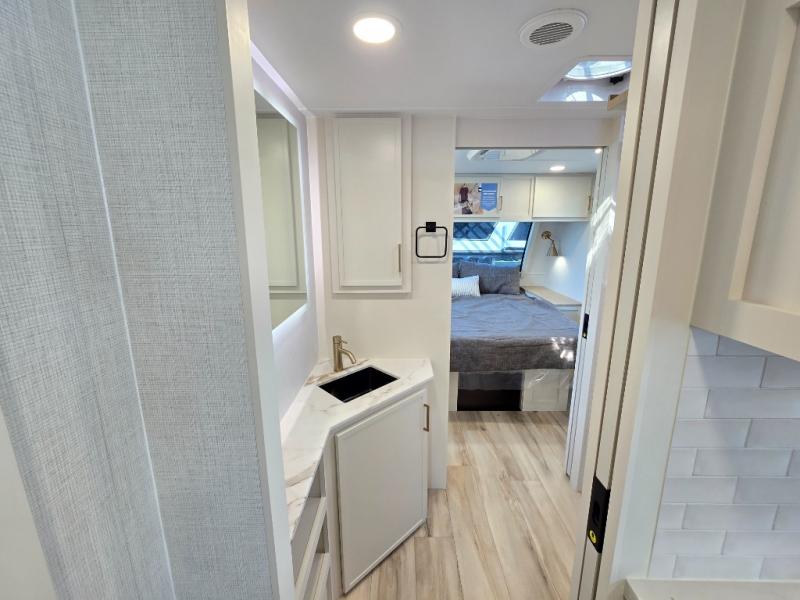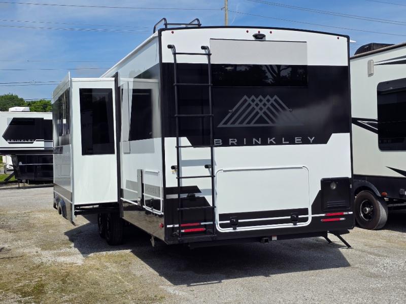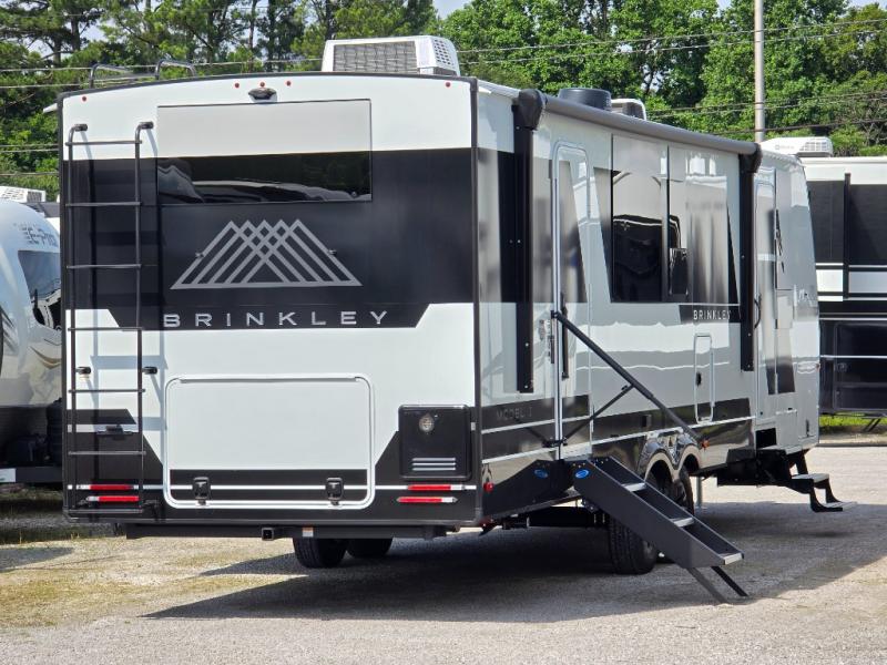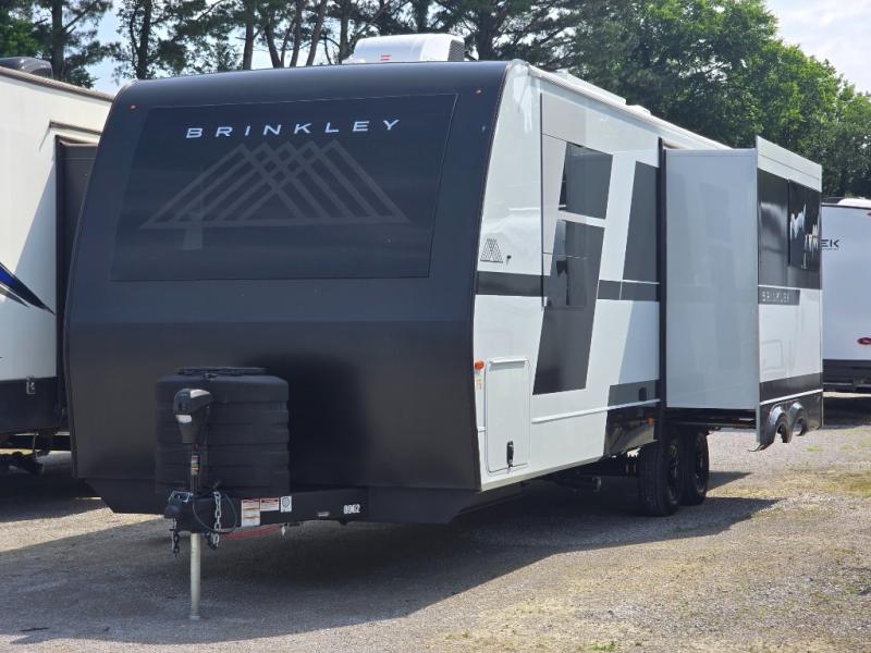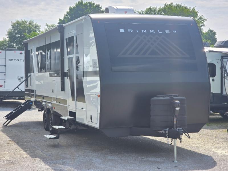 The lightweight Model I travel trailer by Brinkley is the perfect choice for those looking for an easy tow and at-home comforts! There is a drop-frame chassis, high-performance Road Armor suspension equalizer system, and Demco EZ Latch trailer coupler that automatically latches when dropped onto a hitch ball without the need of a safety pin. Additional exterior features include square Euro frameless windows, automotive-grade paint, full-width LED strip lighting in the pass-thru, and a pet & property security campside tie-down to keep your gear and furry friends safe. Inside, you'll be wowed by Brinkley's CraftSense wood trim construction, residential solid surface kitchen countertops, dimmable bedroom lights, and marine-grade neon LED shower lighting to name a few stand-out features!