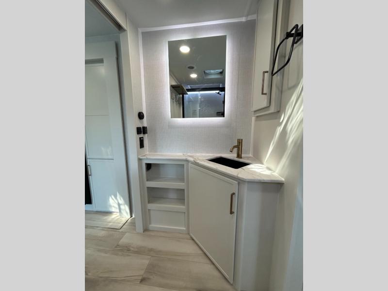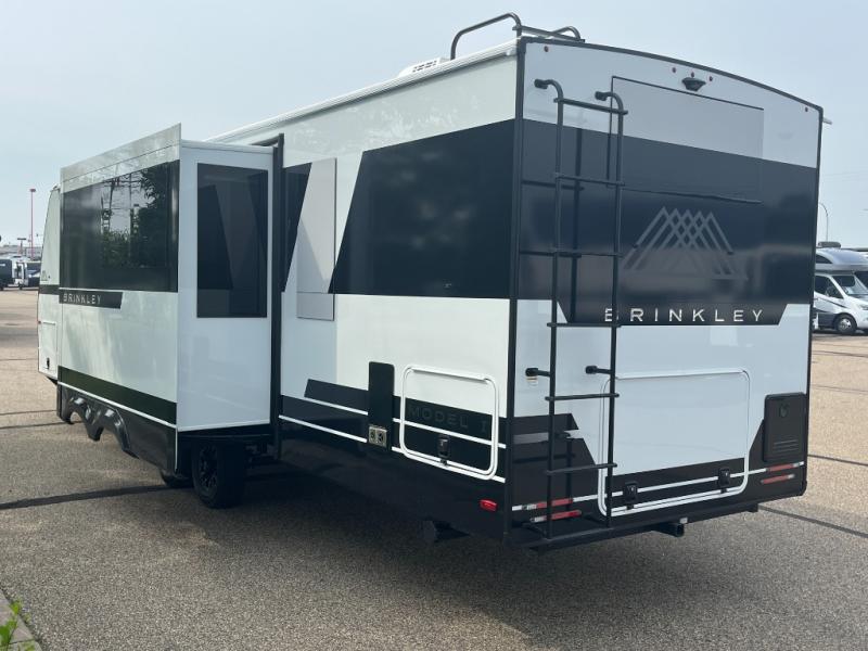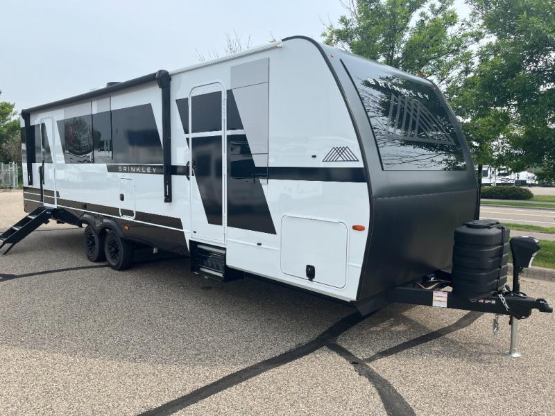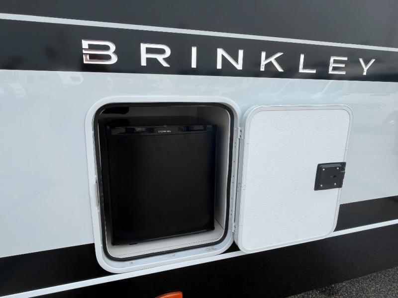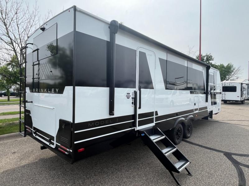 The lightweight Model I travel trailer by Brinkley is the perfect choice for those looking for an easy tow and at-home comforts! There is a drop-frame chassis, high-performance Road Armor suspension equalizer system, and Demco EZ Latch trailer coupler that automatically latches when dropped onto a hitch ball without the need of a safety pin. Additional exterior features include square Euro frameless windows, automotive-grade paint, full-width LED strip lighting in the pass-thru, and a pet & property security campside tie-down to keep your gear and furry friends safe. Inside, you'll be wowed by Brinkley's CraftSense wood trim construction, residential solid surface kitchen countertops, dimmable bedroom lights, and marine-grade neon LED shower lighting to name a few stand-out features!