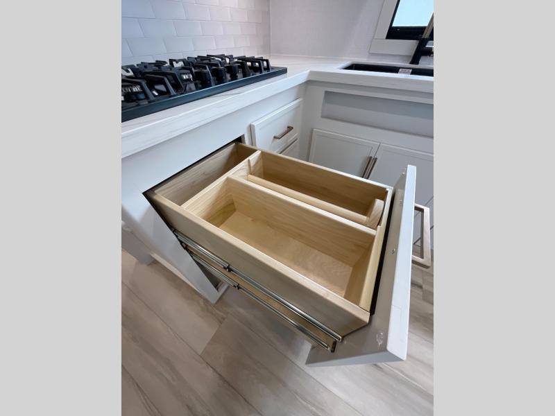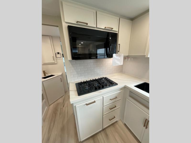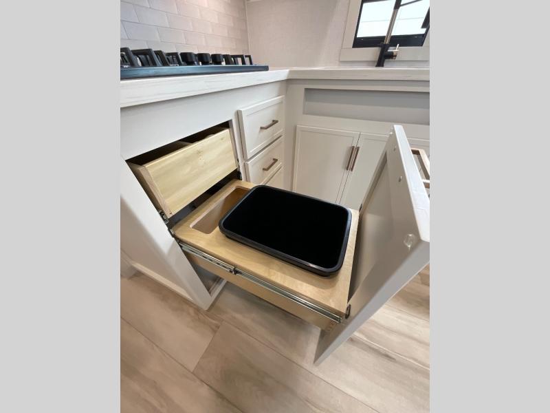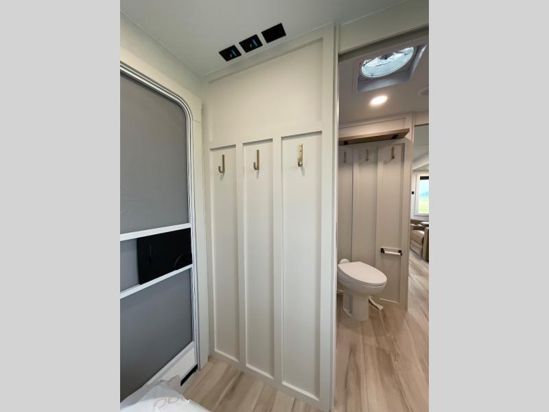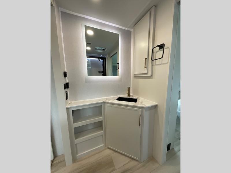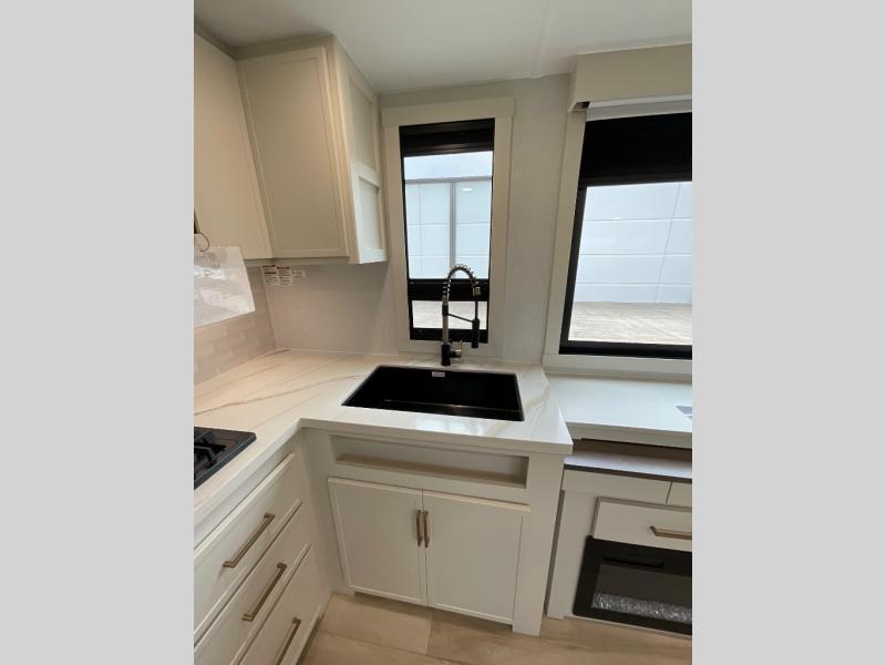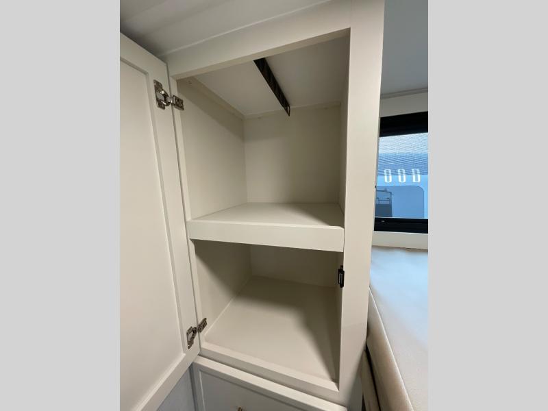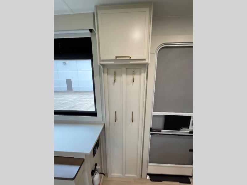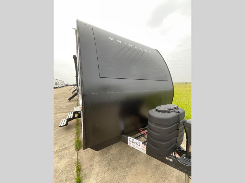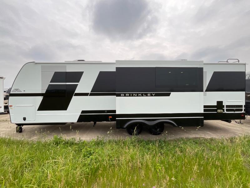 The lightweight Model I travel trailer by Brinkley is the perfect choice for those looking for an easy tow and at-home comforts! There is a drop-frame chassis, high-performance Road Armor suspension equalizer system, and Demco EZ Latch trailer coupler that automatically latches when dropped onto a hitch ball without the need of a safety pin. Additional exterior features include square Euro frameless windows, automotive-grade paint, full-width LED strip lighting in the pass-thru, and a pet & property security campside tie-down to keep your gear and furry friends safe. Inside, you'll be wowed by Brinkley's CraftSense wood trim construction, residential solid surface kitchen countertops, dimmable bedroom lights, and marine-grade neon LED shower lighting to name a few stand-out features!
