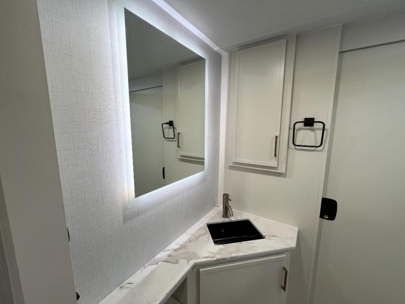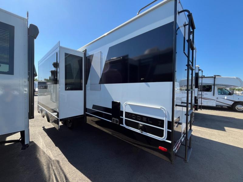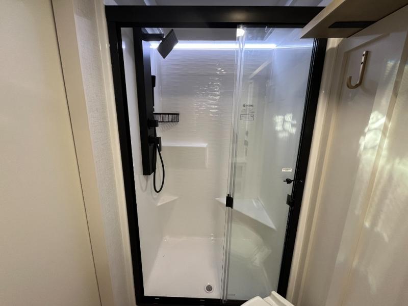 The lightweight Model I travel trailer by Brinkley is the perfect choice for those looking for an easy tow and at-home comforts! There is a drop-frame chassis, high-performance Road Armor suspension equalizer system, and Demco EZ Latch trailer coupler that automatically latches when dropped onto a hitch ball without the need of a safety pin. Additional exterior features include square Euro frameless windows, automotive-grade paint, full-width LED strip lighting in the pass-thru, and a pet & property security campside tie-down to keep your gear and furry friends safe. Inside, you'll be wowed by Brinkley's CraftSense wood trim construction, residential solid surface kitchen countertops, dimmable bedroom lights, and marine-grade neon LED shower lighting to name a few stand-out features!