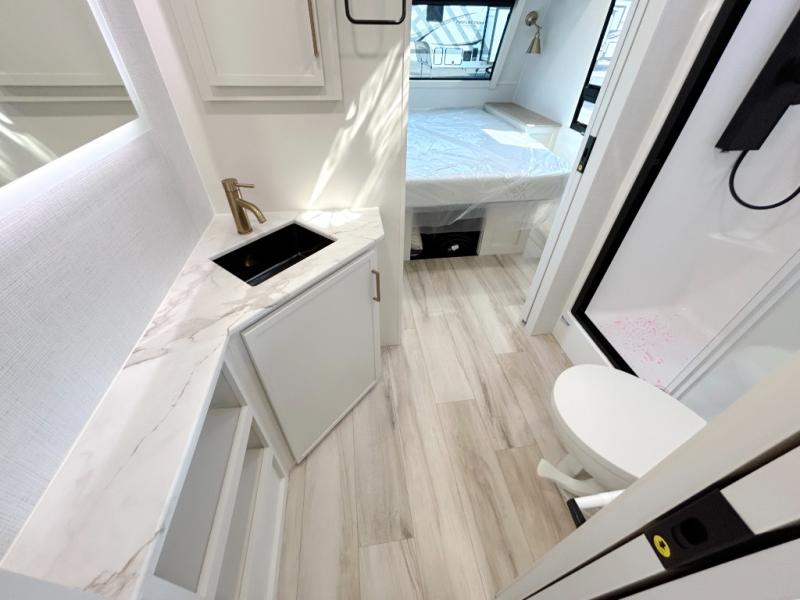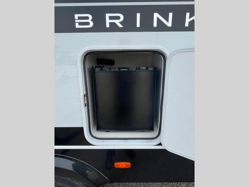 The lightweight Model I travel trailer by Brinkley is the perfect choice for those looking for an easy tow and at-home comforts! There is a drop-frame chassis, high-performance Road Armor suspension equalizer system, and Demco EZ Latch trailer coupler that automatically latches when dropped onto a hitch ball without the need of a safety pin. Additional exterior features include square Euro frameless windows, automotive-grade paint, full-width LED strip lighting in the pass-thru, and a pet & property security campside tie-down to keep your gear and furry friends safe. Inside, you'll be wowed by Brinkley's CraftSense wood trim construction, residential solid surface kitchen countertops, dimmable bedroom lights, and marine-grade neon LED shower lighting to name a few stand-out features!