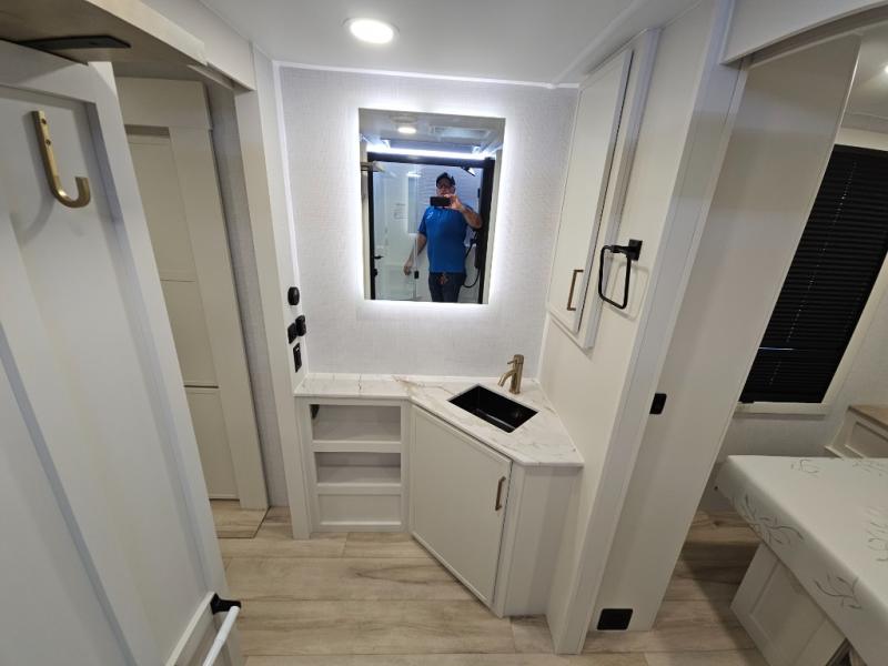 The lightweight Model I travel trailer by Brinkley is the perfect choice for those looking for an easy tow and at-home comforts! There is a drop-frame chassis, high-performance Road Armor suspension equalizer system, and Demco EZ Latch trailer coupler that automatically latches when dropped onto a hitch ball without the need of a safety pin. Additional exterior features include square Euro frameless windows, automotive-grade paint, full-width LED strip lighting in the pass-thru, and a pet & property security campside tie-down to keep your gear and furry friends safe. Inside, you'll be wowed by Brinkley's CraftSense wood trim construction, residential solid surface kitchen countertops, dimmable bedroom lights, and marine-grade neon LED shower lighting to name a few stand-out features!