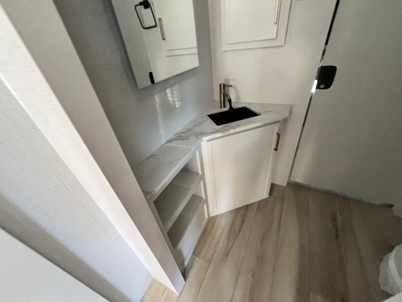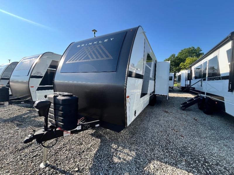 The lightweight Model I travel trailer by Brinkley is the perfect choice for those looking for an easy tow and at-home comforts! There is a drop-frame chassis, high-performance Road Armor suspension equalizer system, and Demco EZ Latch trailer coupler that automatically latches when dropped onto a hitch ball without the need of a safety pin. Additional exterior features include square Euro frameless windows, automotive-grade paint, full-width LED strip lighting in the pass-thru, and a pet & property security campside tie-down to keep your gear and furry friends safe. Inside, you'll be wowed by Brinkley's CraftSense wood trim construction, residential solid surface kitchen countertops, dimmable bedroom lights, and marine-grade neon LED shower lighting to name a few stand-out features!