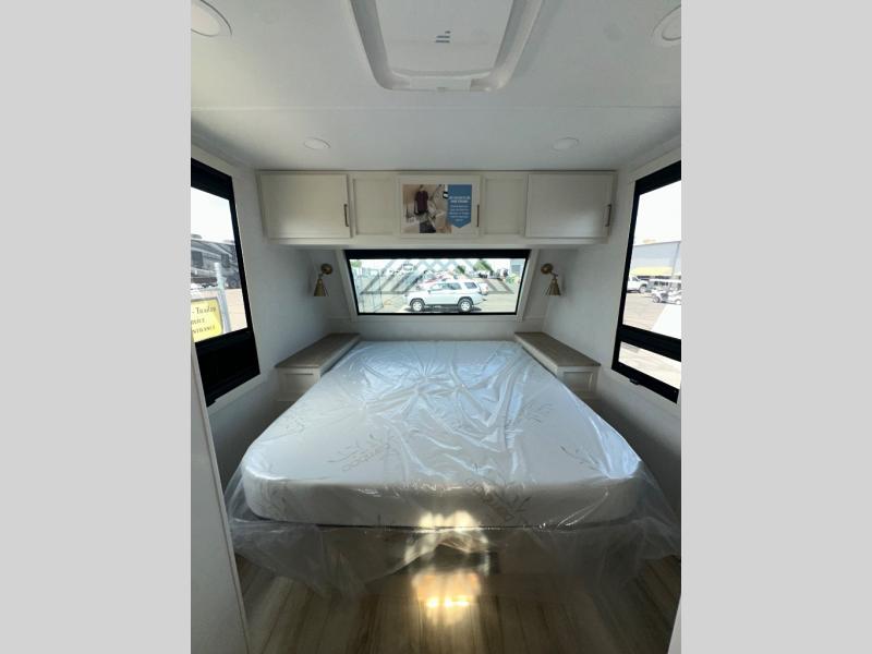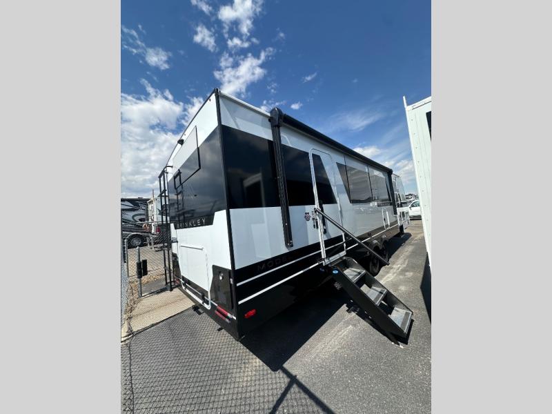 The lightweight Model I travel trailer by Brinkley is the perfect choice for those looking for an easy tow and at-home comforts! There is a drop-frame chassis, high-performance Road Armor suspension equalizer system, and Demco EZ Latch trailer coupler that automatically latches when dropped onto a hitch ball without the need of a safety pin. Additional exterior features include square Euro frameless windows, automotive-grade paint, full-width LED strip lighting in the pass-thru, and a pet & property security campside tie-down to keep your gear and furry friends safe. Inside, you'll be wowed by Brinkley's CraftSense wood trim construction, residential solid surface kitchen countertops, dimmable bedroom lights, and marine-grade neon LED shower lighting to name a few stand-out features!