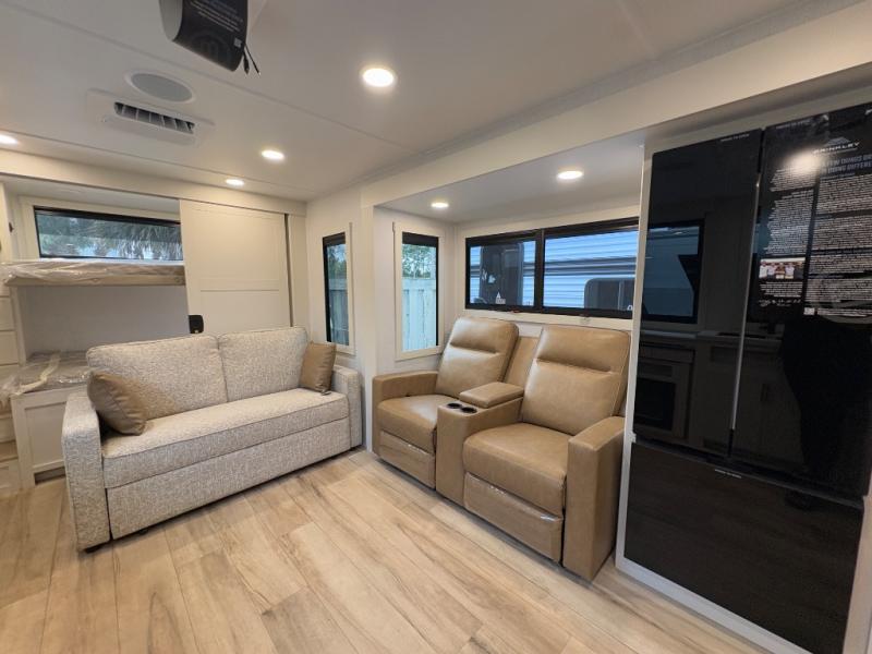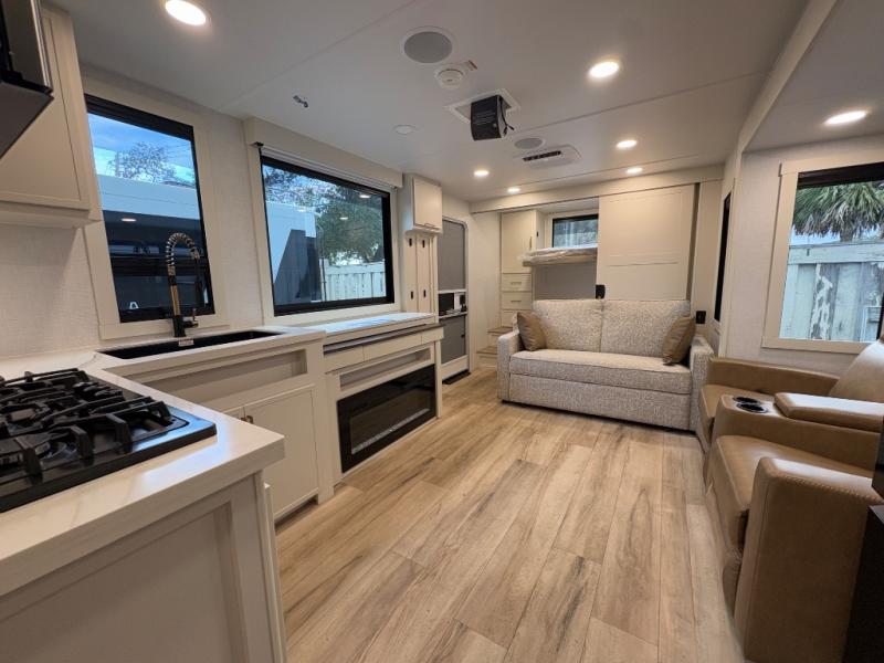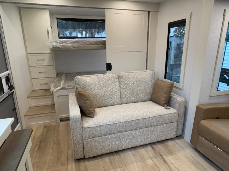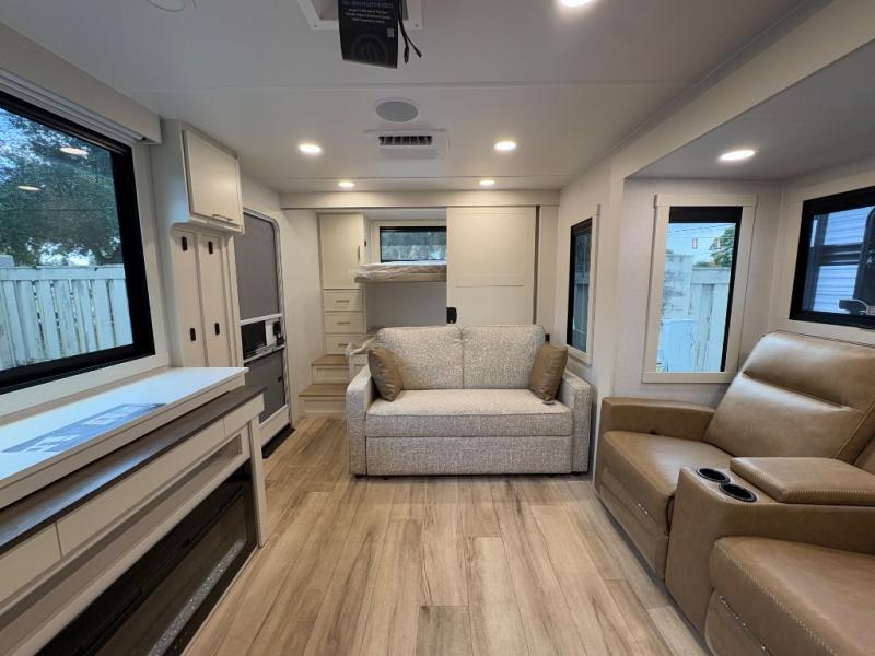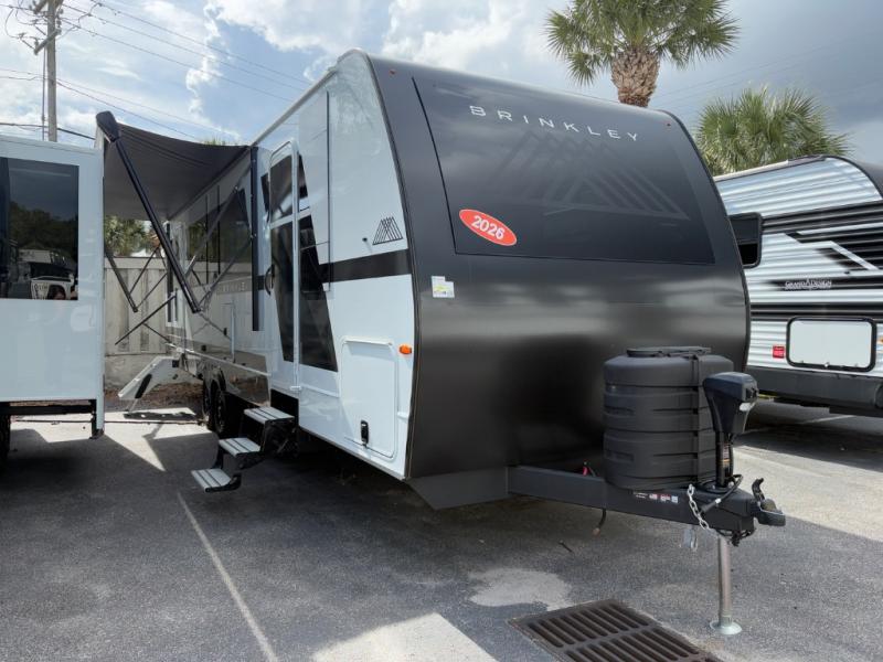 The Brinkley Model I 294 delivers the perfect balance of luxury, comfort, and lightweight towability. From the thoughtfully designed bunkhouse and king bedroom to its sleek exterior and innovative construction, this travel trailer redefines family camping. With upscale finishes and practical features inside and out, the Model I is ready for your next adventure.