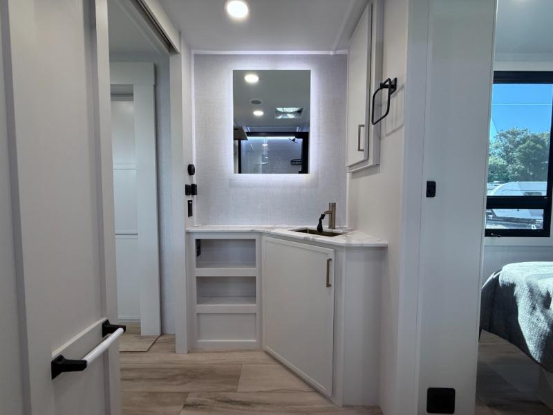 The Brinkley Model I 294 is built for families who want both style and functionality in a lightweight travel trailer. With a spacious bunkhouse, private king suite, and two entry doors, this floorplan makes camping convenient and comfortable. Inside, you’ll find residential finishes and smart storage, while the exterior is designed with premium materials for durability and easy towing.
