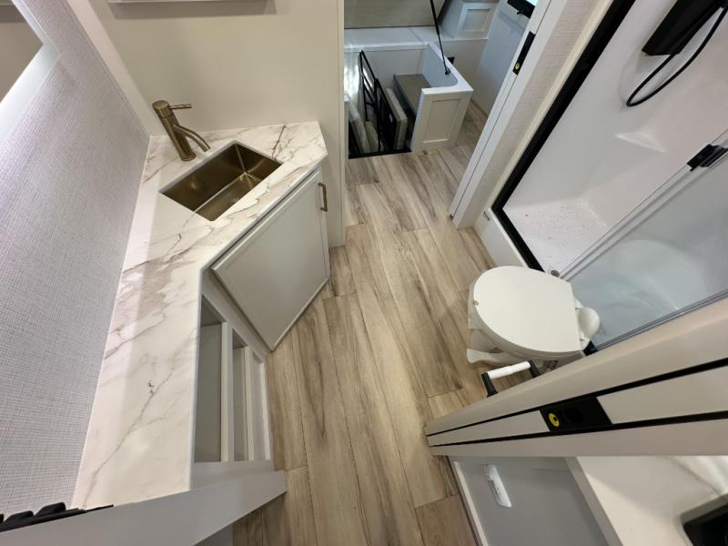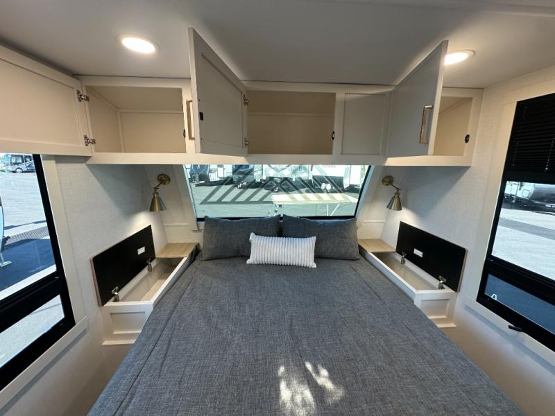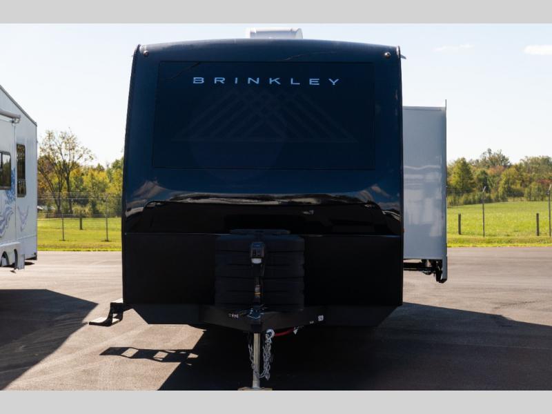 The lightweight Model I travel trailer by Brinkley is the perfect choice for those looking for an easy tow and at-home comforts! There is a drop-frame chassis, high-performance Road Armor suspension equalizer system, and Demco EZ Latch trailer coupler that automatically latches when dropped onto a hitch ball without the need of a safety pin. Additional exterior features include square Euro frameless windows, automotive-grade paint, full-width LED strip lighting in the pass-thru, and a pet & property security campside tie-down to keep your gear and furry friends safe. Inside, you'll be wowed by Brinkley's CraftSense wood trim construction, residential solid surface kitchen countertops, dimmable bedroom lights, and marine-grade neon LED shower lighting to name a few stand-out features!