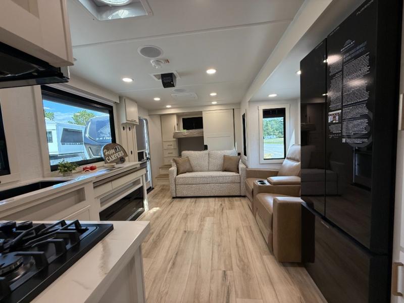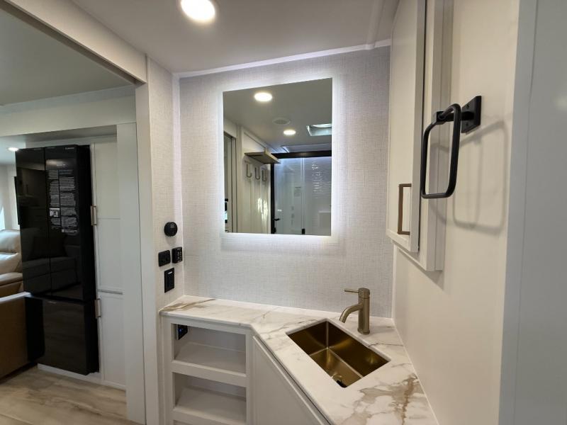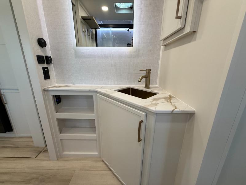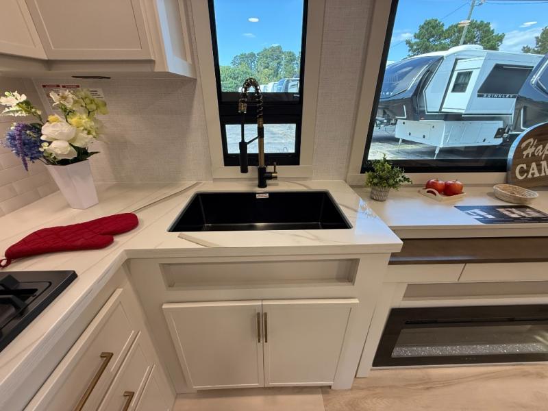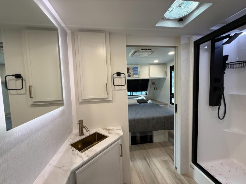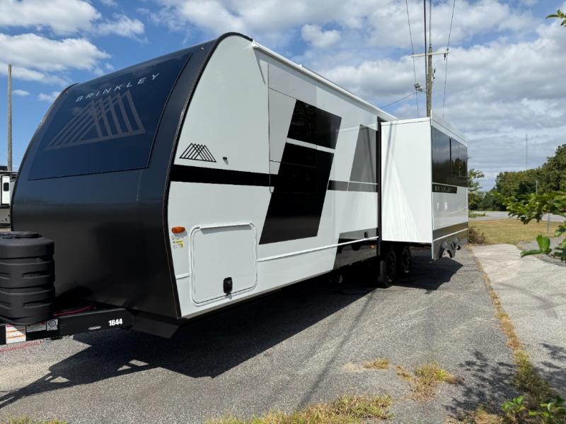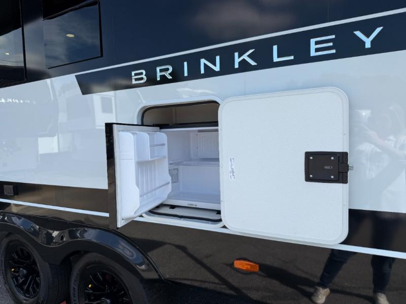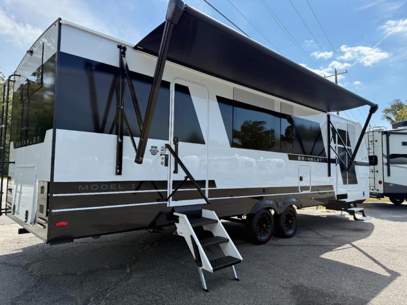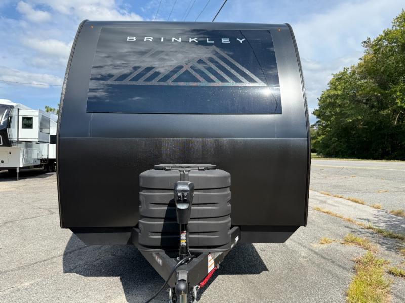 The lightweight Model I travel trailer by Brinkley is the perfect choice for those looking for an easy tow and at-home comforts! There is a drop-frame chassis, high-performance Road Armor suspension equalizer system, and Demco EZ Latch trailer coupler that automatically latches when dropped onto a hitch ball without the need of a safety pin. Additional exterior features include square Euro frameless windows, automotive-grade paint, full-width LED strip lighting in the pass-thru, and a pet & property security campside tie-down to keep your gear and furry friends safe. Inside, you'll be wowed by Brinkley's CraftSense wood trim construction, residential solid surface kitchen countertops, dimmable bedroom lights, and marine-grade neon LED shower lighting to name a few stand-out features!
