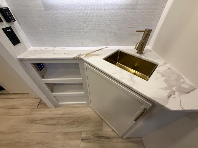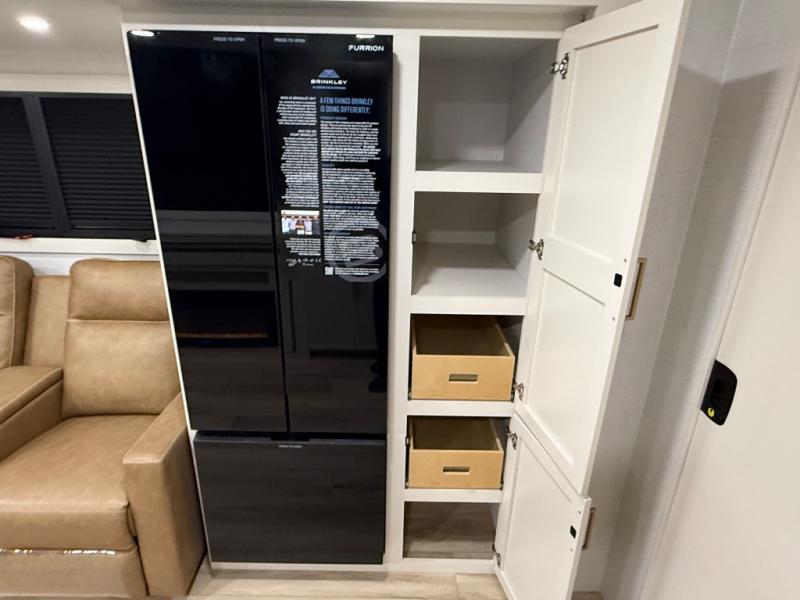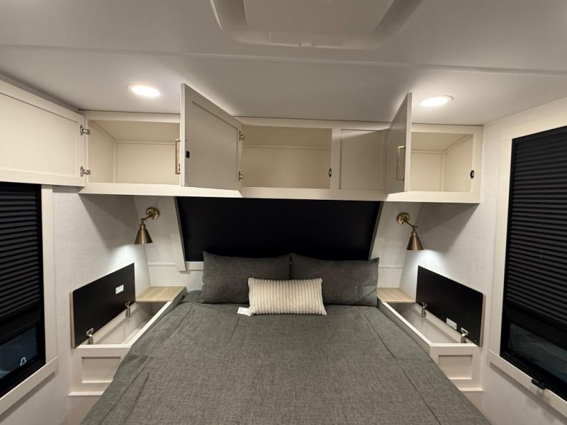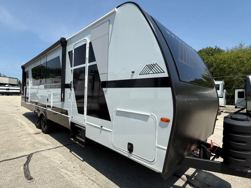 The lightweight Model I travel trailer by Brinkley is the perfect choice for those looking for an easy tow and at-home comforts! There is a drop-frame chassis, high-performance Road Armor suspension equalizer system, and Demco EZ Latch trailer coupler that automatically latches when dropped onto a hitch ball without the need of a safety pin. Additional exterior features include square Euro frameless windows, automotive-grade paint, full-width LED strip lighting in the pass-thru, and a pet & property security campside tie-down to keep your gear and furry friends safe. Inside, you'll be wowed by Brinkley's CraftSense wood trim construction, residential solid surface kitchen countertops, dimmable bedroom lights, and marine-grade neon LED shower lighting to name a few stand-out features!
