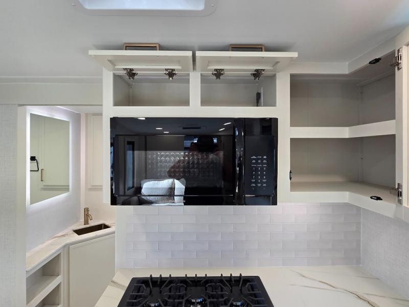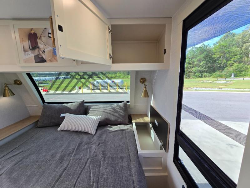The lightweight Model I travel trailer by Brinkley is the perfect choice for those looking for an easy tow and at-home comforts! There is a drop-frame chassis, high-performance Road Armor suspension equalizer system, and Demco EZ Latch trailer coupler that automatically latches when dropped onto a hitch ball without the need of a safety pin. Additional exterior features include square Euro frameless windows, automotive-grade paint, full-width LED strip lighting in the pass-thru, and a pet & property security campside tie-down to keep your gear and furry friends safe. Inside, you'll be wowed by Brinkley's CraftSense wood trim construction, residential solid surface kitchen countertops, dimmable bedroom lights, and marine-grade neon LED shower lighting to name a few stand-out features!