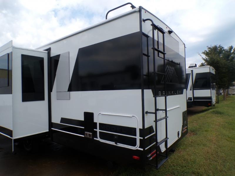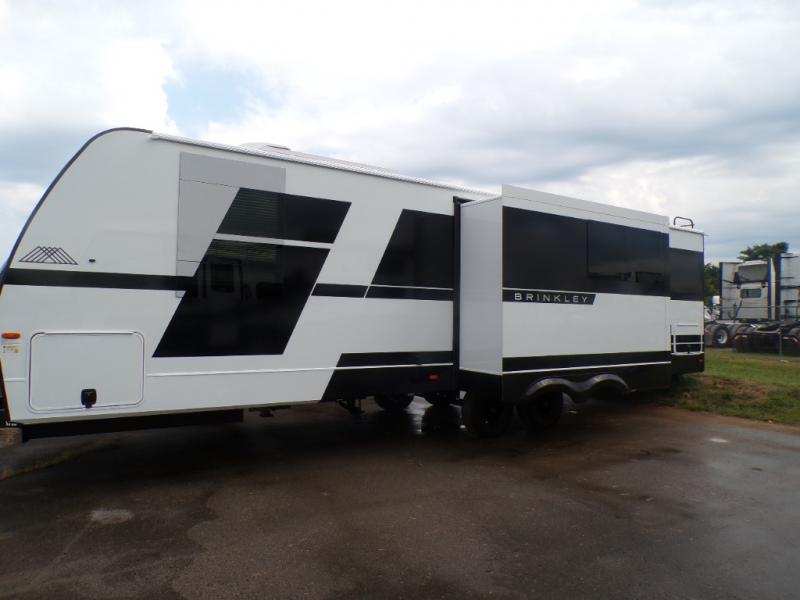 The lightweight Model I travel trailer by Brinkley is the perfect choice for those looking for an easy tow and at-home comforts! There is a drop-frame chassis, high-performance Road Armor suspension equalizer system, and Demco EZ Latch trailer coupler that automatically latches when dropped onto a hitch ball without the need of a safety pin. Additional exterior features include square Euro frameless windows, automotive-grade paint, full-width LED strip lighting in the pass-thru, and a pet & property security campside tie-down to keep your gear and furry friends safe. Inside, you'll be wowed by Brinkley's CraftSense wood trim construction, residential solid surface kitchen countertops, dimmable bedroom lights, and marine-grade neon LED shower lighting to name a few stand-out features!