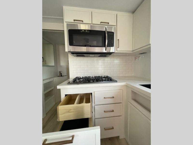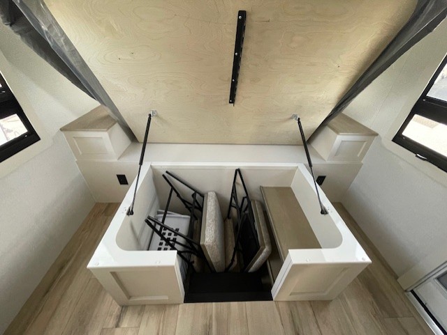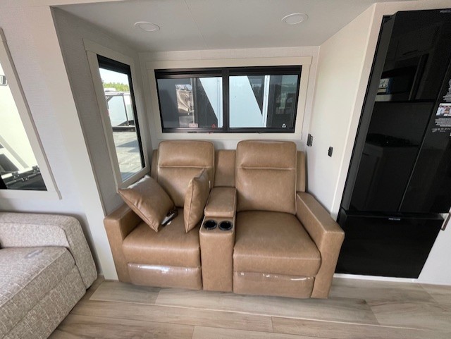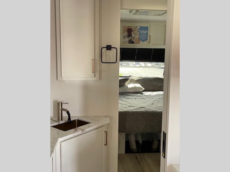 The lightweight Model I travel trailer by Brinkley is the perfect choice for those looking for an easy tow and at-home comforts! There is a drop-frame chassis, high-performance Road Armor suspension equalizer system, and Demco EZ Latch trailer coupler that automatically latches when dropped onto a hitch ball without the need of a safety pin. Additional exterior features include square Euro frameless windows, automotive-grade paint, full-width LED strip lighting in the pass-thru, and a pet & property security campside tie-down to keep your gear and furry friends safe. Inside, you'll be wowed by Brinkley's CraftSense wood trim construction, residential solid surface kitchen countertops, dimmable bedroom lights, and marine-grade neon LED shower lighting to name a few stand-out features!