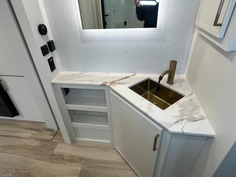 The lightweight Model I travel trailer by Brinkley is the perfect choice for those looking for an easy tow and at-home comforts! There is a drop-frame chassis, high-performance Road Armor suspension equalizer system, and Demco EZ Latch trailer coupler that automatically latches when dropped onto a hitch ball without the need of a safety pin. Additional exterior features include square Euro frameless windows, automotive-grade paint, full-width LED strip lighting in the pass-thru, and a pet & property security campside tie-down to keep your gear and furry friends safe. Inside, you'll be wowed by Brinkley's CraftSense wood trim construction, residential solid surface kitchen countertops, dimmable bedroom lights, and marine-grade neon LED shower lighting to name a few stand-out features!