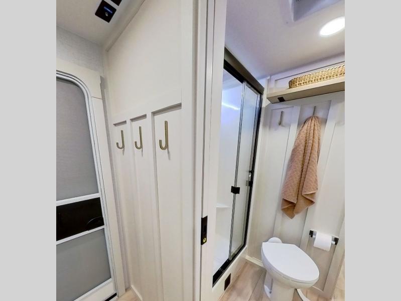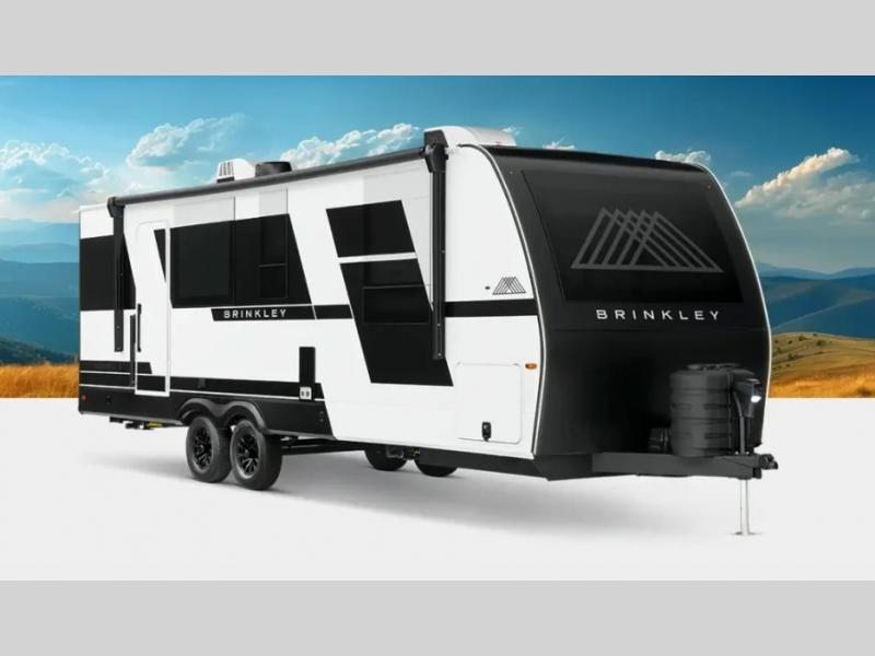 The lightweight Model I travel trailer by Brinkley is the perfect choice for those looking for an easy tow and at-home comforts! There is a drop-frame chassis, high-performance Road Armor suspension equalizer system, and Demco EZ Latch trailer coupler that automatically latches when dropped onto a hitch ball without the need of a safety pin. Additional exterior features include square Euro frameless windows, automotive-grade paint, full-width LED strip lighting in the pass-thru, and a pet & property security campside tie-down to keep your gear and furry friends safe. Inside, you'll be wowed by Brinkley's CraftSense wood trim construction, residential solid surface kitchen countertops, dimmable bedroom lights, and marine-grade neon LED shower lighting to name a few stand-out features!