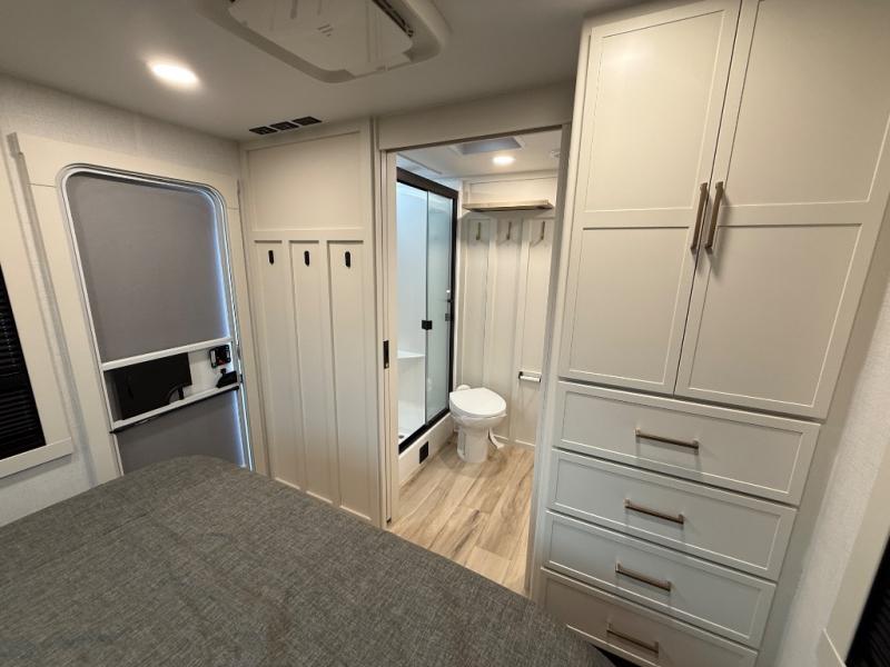 The lightweight Model I travel trailer by Brinkley is the perfect choice for those looking for an easy tow and at-home comforts! There is a drop-frame chassis, high-performance Road Armor suspension equalizer system, and Demco EZ Latch trailer coupler that automatically latches when dropped onto a hitch ball without the need of a safety pin. Additional exterior features include square Euro frameless windows, automotive-grade paint, full-width LED strip lighting in the pass-thru, and a pet & property security campside tie-down to keep your gear and furry friends safe. Inside, you'll be wowed by Brinkley's CraftSense wood trim construction, residential solid surface kitchen countertops, dimmable bedroom lights, and marine-grade neon LED shower lighting to name a few stand-out features!