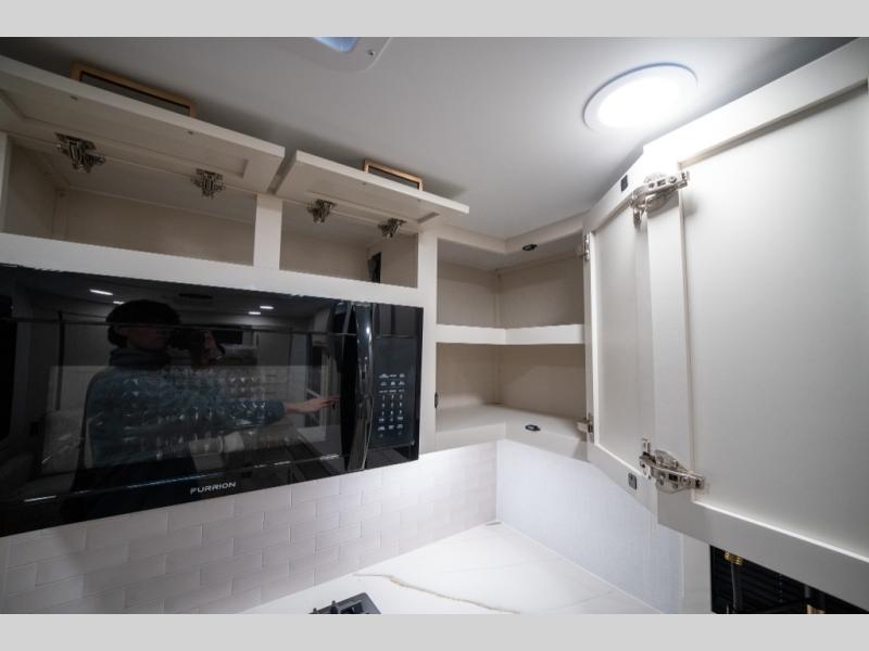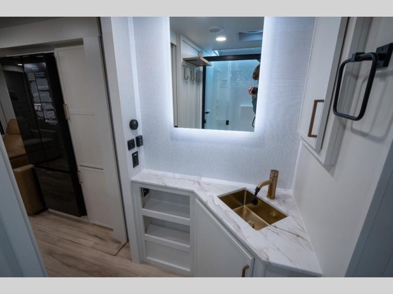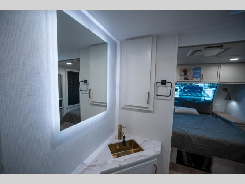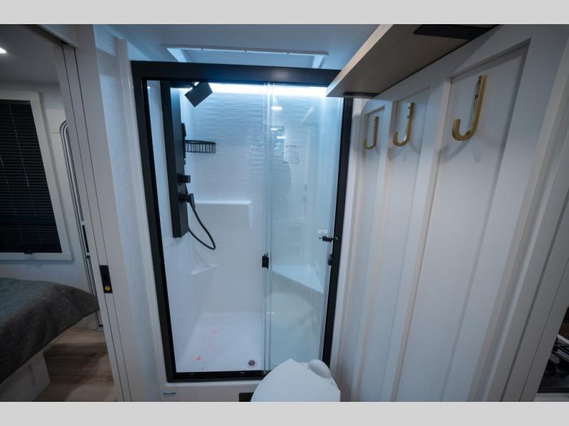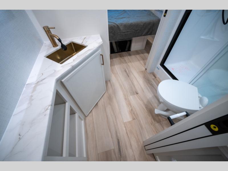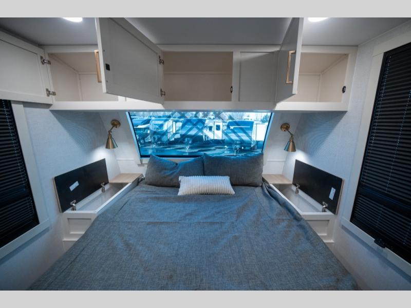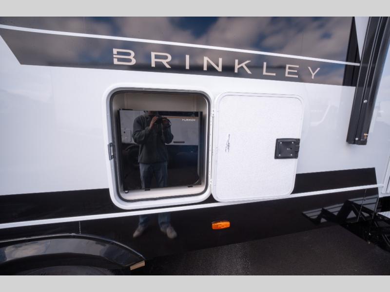 The lightweight Model I travel trailer by Brinkley is the perfect choice for those looking for an easy tow and at-home comforts! There is a drop-frame chassis, high-performance Road Armor suspension equalizer system, and Demco EZ Latch trailer coupler that automatically latches when dropped onto a hitch ball without the need of a safety pin. Additional exterior features include square Euro frameless windows, automotive-grade paint, full-width LED strip lighting in the pass-thru, and a pet & property security campside tie-down to keep your gear and furry friends safe. Inside, you'll be wowed by Brinkley's CraftSense wood trim construction, residential solid surface kitchen countertops, dimmable bedroom lights, and marine-grade neon LED shower lighting to name a few stand-out features!