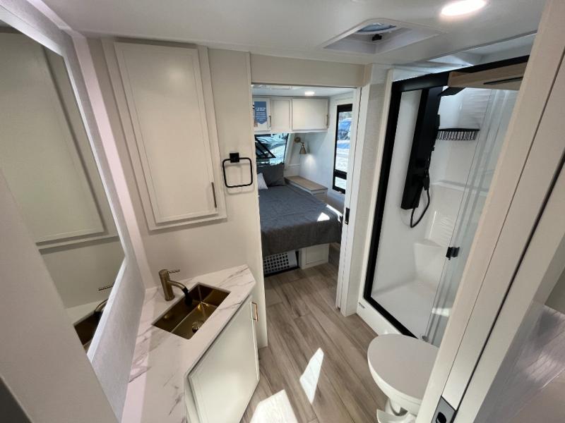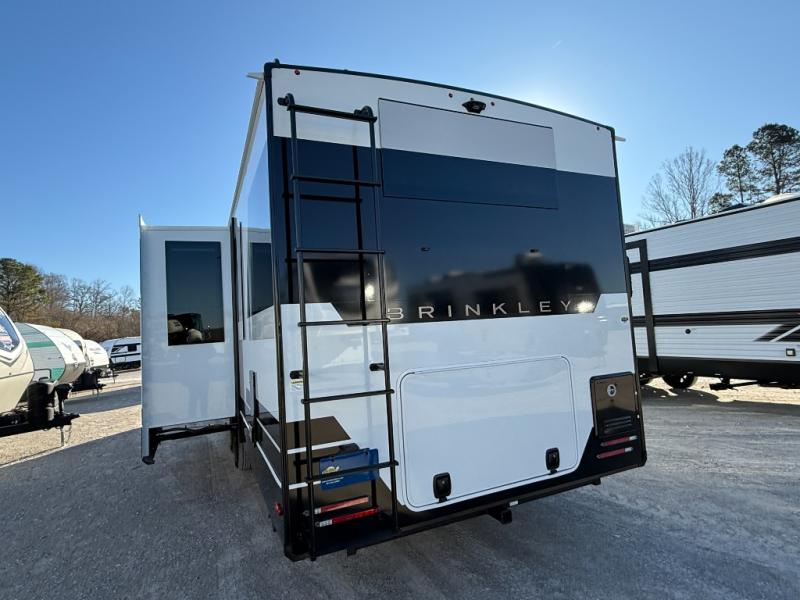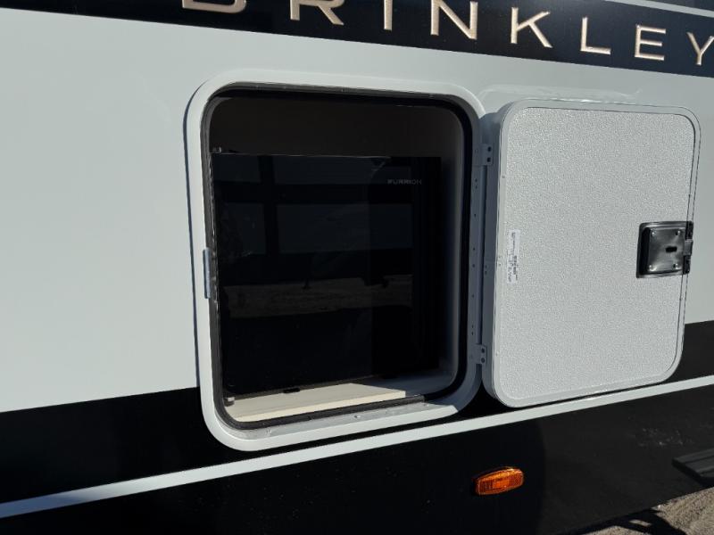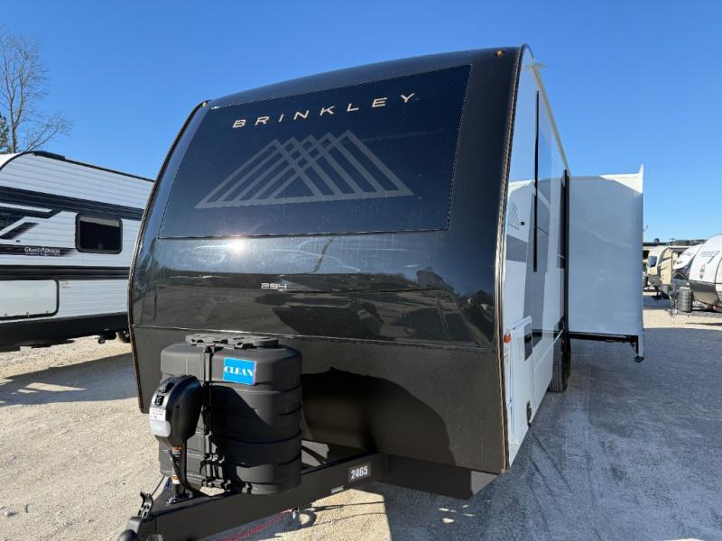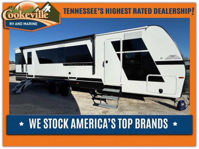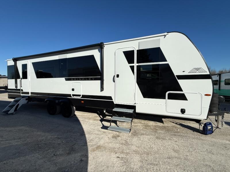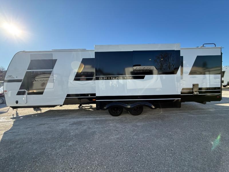 The lightweight Model I travel trailer by Brinkley is the perfect choice for those looking for an easy tow and at-home comforts! There is a drop-frame chassis, high-performance Road Armor suspension equalizer system, and Demco EZ Latch trailer coupler that automatically latches when dropped onto a hitch ball without the need of a safety pin. Additional exterior features include square Euro frameless windows, automotive-grade paint, full-width LED strip lighting in the pass-thru, and a pet & property security campside tie-down to keep your gear and furry friends safe. Inside, you'll be wowed by Brinkley's CraftSense wood trim construction, residential solid surface kitchen countertops, dimmable bedroom lights, and marine-grade neon LED shower lighting to name a few stand-out features!
