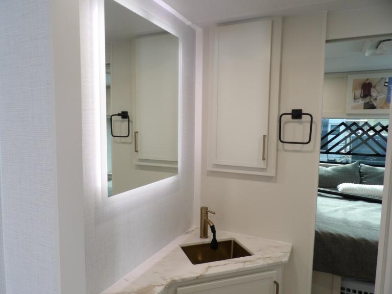 The lightweight Model I travel trailer by Brinkley is the perfect choice for those looking for an easy tow and at-home comforts! There is a drop-frame chassis, high-performance Road Armor suspension equalizer system, and Demco EZ Latch trailer coupler that automatically latches when dropped onto a hitch ball without the need of a safety pin. Additional exterior features include square Euro frameless windows, automotive-grade paint, full-width LED strip lighting in the pass-thru, and a pet & property security campside tie-down to keep your gear and furry friends safe. Inside, you'll be wowed by Brinkley's CraftSense wood trim construction, residential solid surface kitchen countertops, dimmable bedroom lights, and marine-grade neon LED shower lighting to name a few stand-out features!