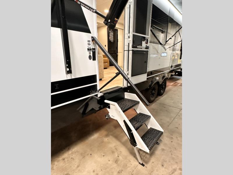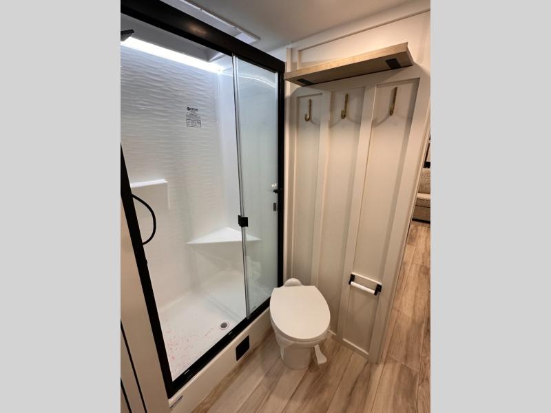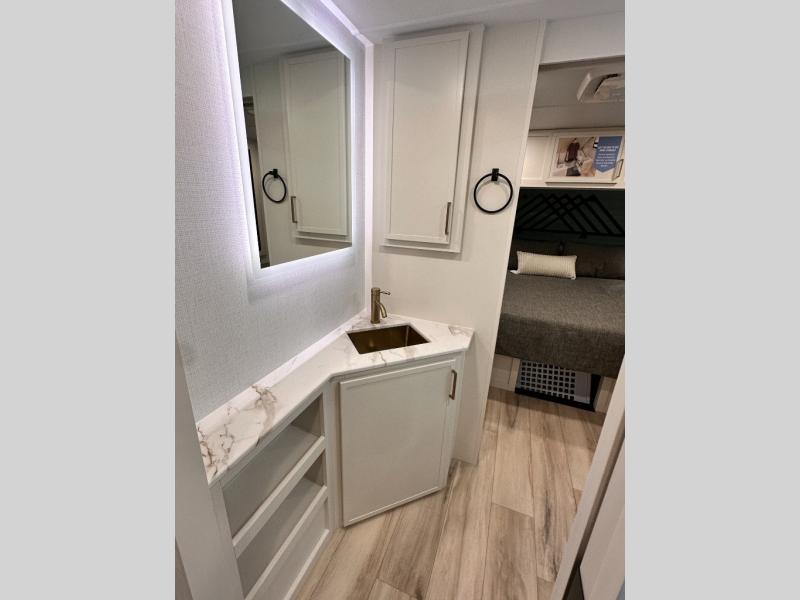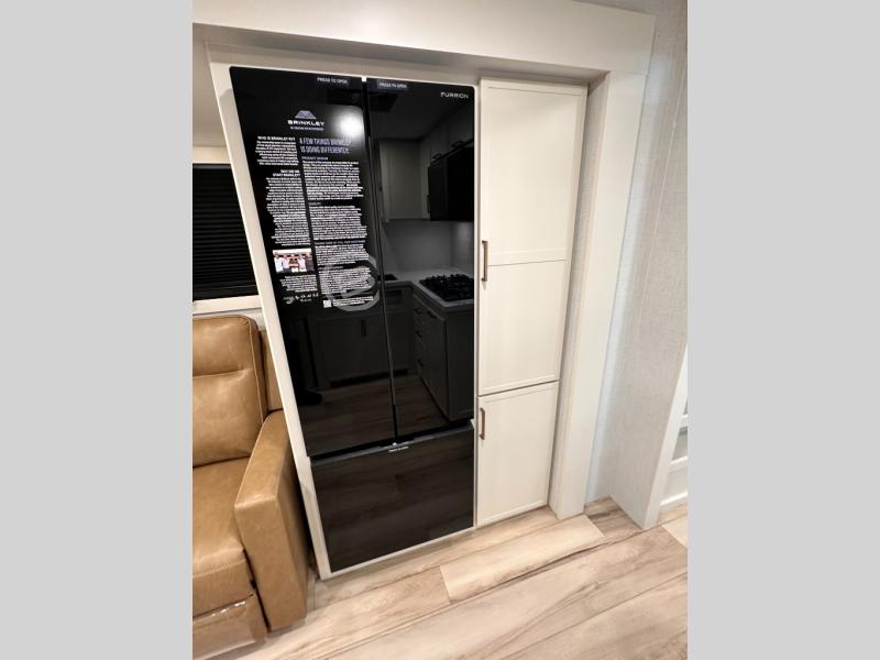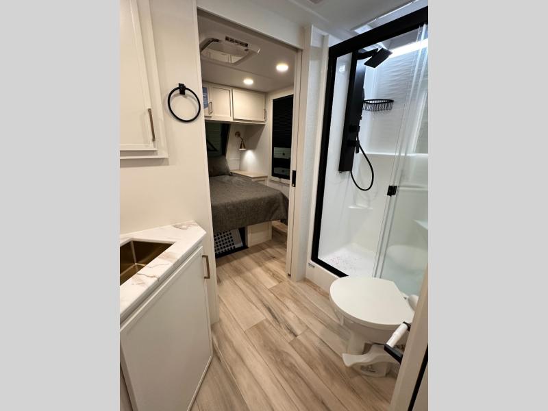 The lightweight Model I travel trailer by Brinkley is the perfect choice for those looking for an easy tow and at-home comforts! There is a drop-frame chassis, high-performance Road Armor suspension equalizer system, and Demco EZ Latch trailer coupler that automatically latches when dropped onto a hitch ball without the need of a safety pin. Additional exterior features include square Euro frameless windows, automotive-grade paint, full-width LED strip lighting in the pass-thru, and a pet & property security campside tie-down to keep your gear and furry friends safe. Inside, you'll be wowed by Brinkley's CraftSense wood trim construction, residential solid surface kitchen countertops, dimmable bedroom lights, and marine-grade neon LED shower lighting to name a few stand-out features!