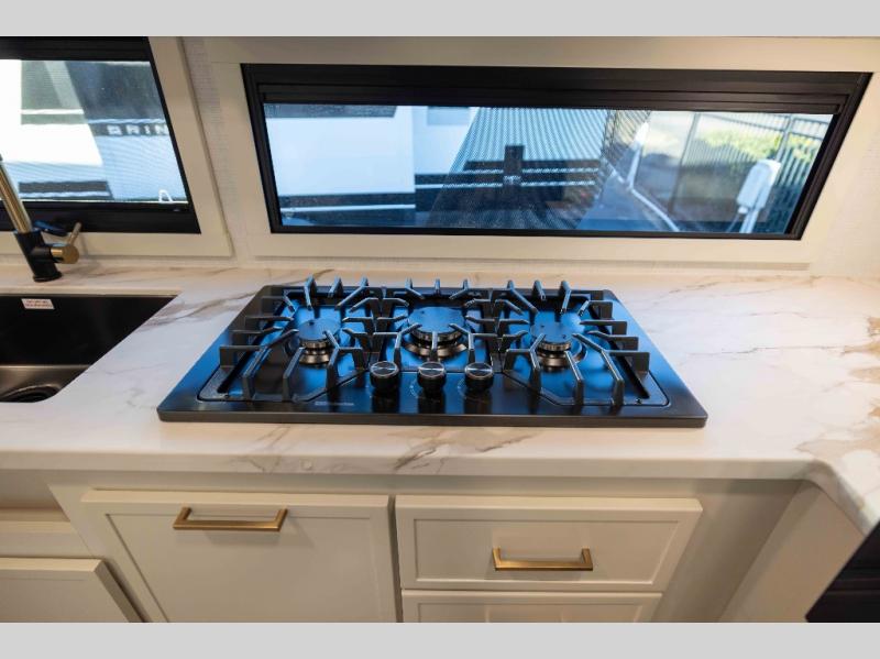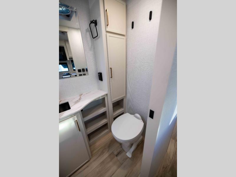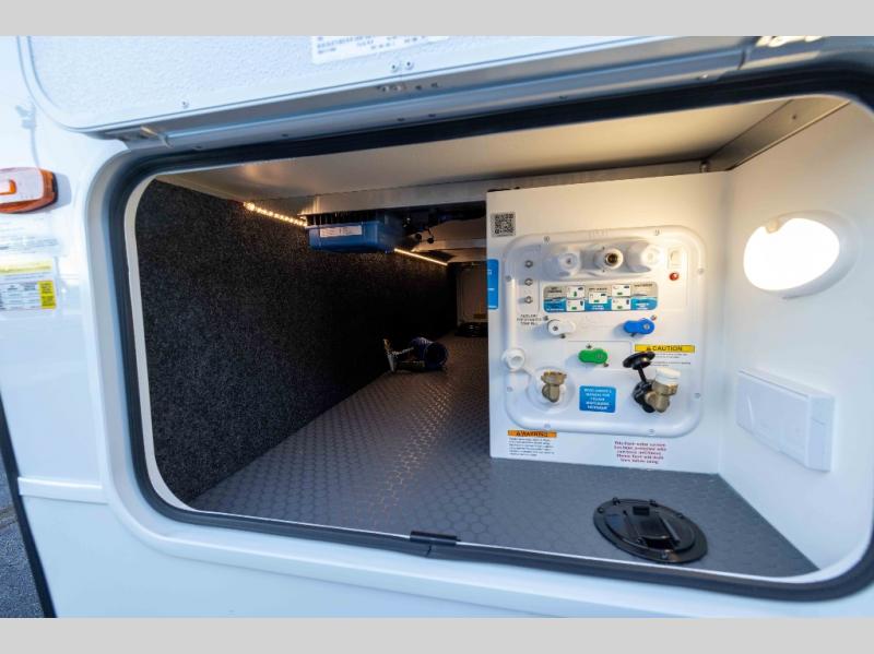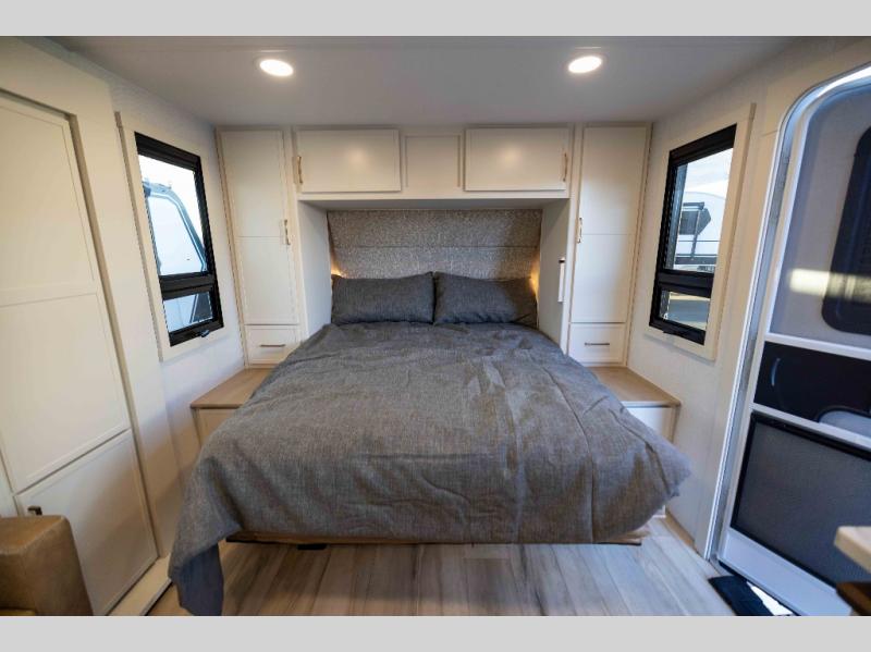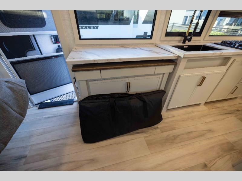 The Model Ix by Brinkley is your ticket to lightweight towing and exceptional features. This premium half-ton towable travel trailer features Brinkley's CraftSense building materials for a higher level of construction, along with a seamless laminated aluminum exterior with automotive grade full-body paint and modern graphics. You will stay powered up thanks to the power package with a 200-watt solar panel, and the Road Armor suspension will help provide a smooth tow from home to campground. The interior of the Model Ix includes premium residential cabinets with dovetail drawers, an ultra quiet and efficient A/C system, and a SoundCore Boom 2 Bluetooth waterproof speaker so you can listen to your favorite tunes indoors or outdoors!
