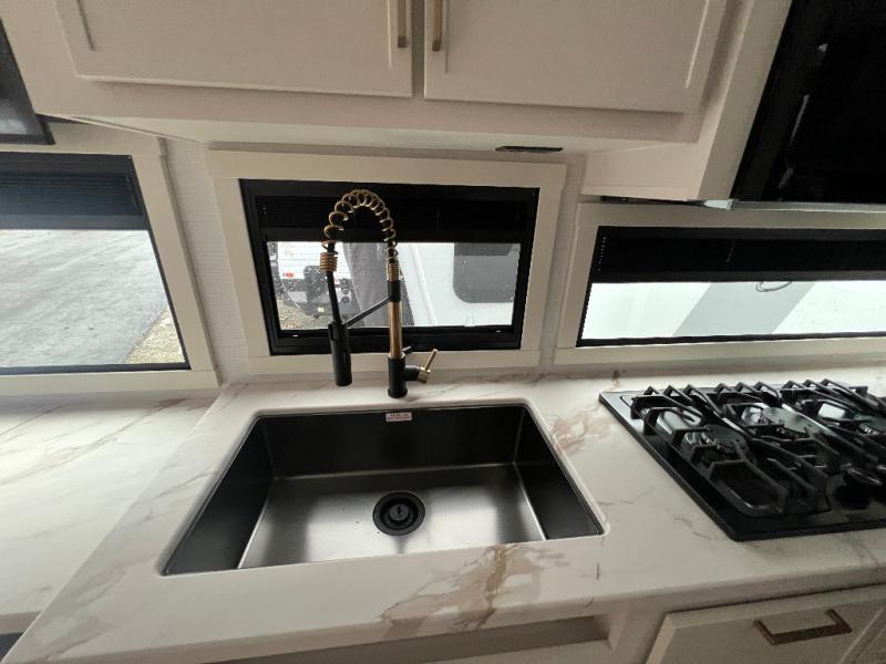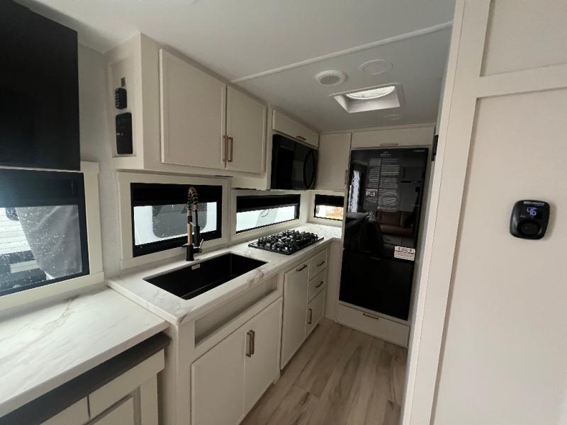 The Model Ix by Brinkley is your ticket to lightweight towing and exceptional features. This premium half-ton towable travel trailer features Brinkley's CraftSense building materials for a higher level of construction, along with a seamless laminated aluminum exterior with automotive grade full-body paint and modern graphics. You will stay powered up thanks to the power package with a 200-watt solar panel, and the Road Armor suspension will help provide a smooth tow from home to campground. The interior of the Model Ix includes premium residential cabinets with dovetail drawers, an ultra quiet and efficient A/C system, and a SoundCore Boom 2 Bluetooth waterproof speaker so you can listen to your favorite tunes indoors or outdoors!