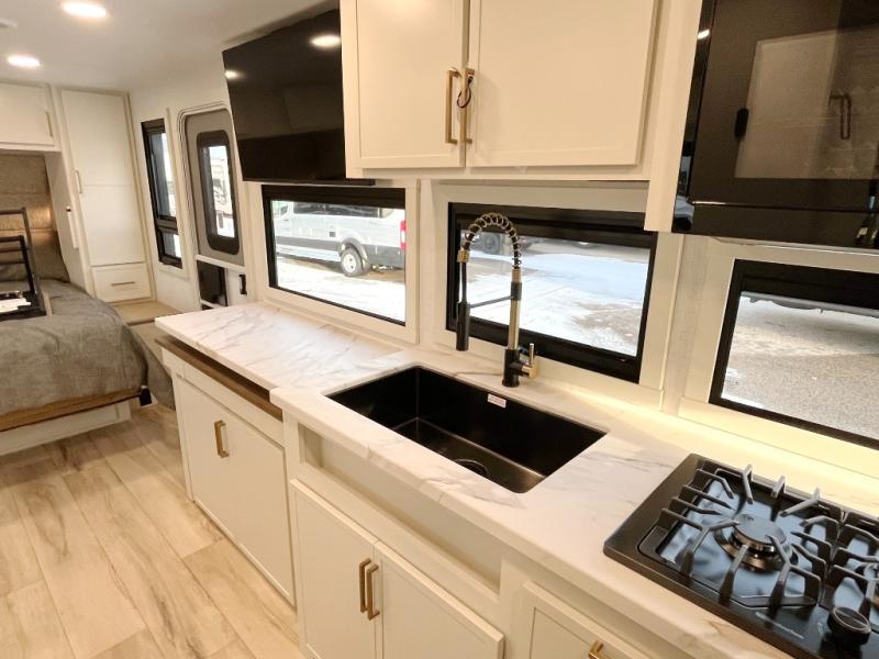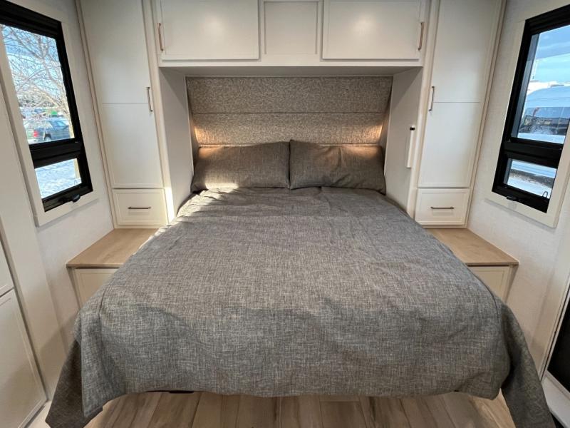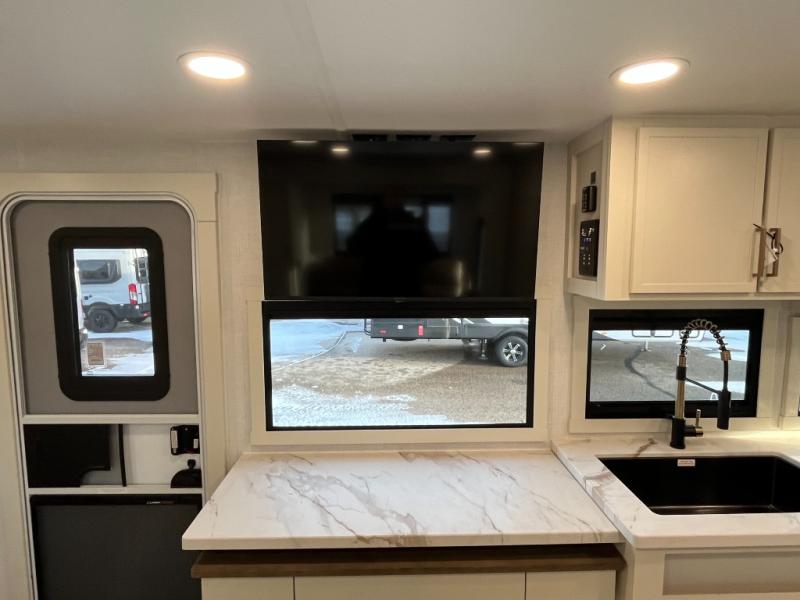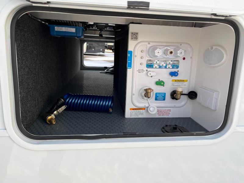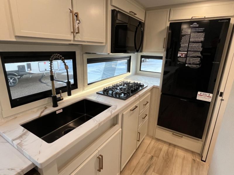 The Model Ix by Brinkley is your ticket to lightweight towing and exceptional features. This premium half-ton towable travel trailer features Brinkley's CraftSense building materials for a higher level of construction, along with a seamless laminated aluminum exterior with automotive grade full-body paint and modern graphics. You will stay powered up thanks to the power package with a 200-watt solar panel, and the Road Armor suspension will help provide a smooth tow from home to campground. The interior of the Model Ix includes premium residential cabinets with dovetail drawers, an ultra quiet and efficient A/C system, and a SoundCore Boom 2 Bluetooth waterproof speaker so you can listen to your favorite tunes indoors or outdoors!