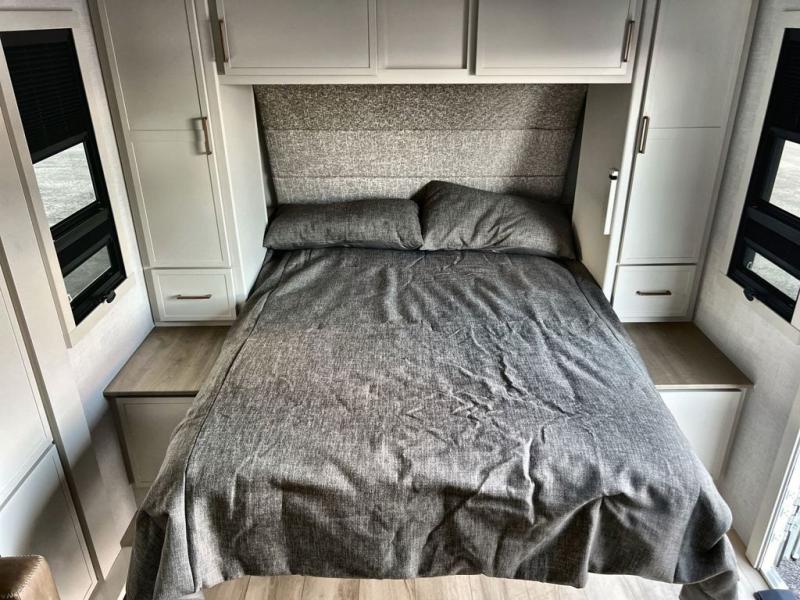 The Model Ix by Brinkley is your ticket to lightweight towing and exceptional features. This premium half-ton towable travel trailer features Brinkley's CraftSense building materials for a higher level of construction, along with a seamless laminated aluminum exterior with automotive grade full-body paint and modern graphics. You will stay powered up thanks to the power package with a 200-watt solar panel, and the Road Armor suspension will help provide a smooth tow from home to campground. The interior of the Model Ix includes premium residential cabinets with dovetail drawers, an ultra quiet and efficient A/C system, and a SoundCore Boom 2 Bluetooth waterproof speaker so you can listen to your favorite tunes indoors or outdoors!