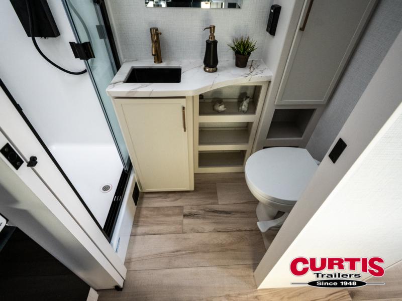 The Model Ix by Brinkley is your ticket to lightweight towing and exceptional features. This premium half-ton towable travel trailer features Brinkley's CraftSense building materials for a higher level of construction, along with a seamless laminated aluminum exterior with automotive grade full-body paint and modern graphics. You will stay powered up thanks to the power package with a 200-watt solar panel, and the Road Armor suspension will help provide a smooth tow from home to campground. The interior of the Model Ix includes premium residential cabinets with dovetail drawers, an ultra quiet and efficient A/C system, and a SoundCore Boom 2 Bluetooth waterproof speaker so you can listen to your favorite tunes indoors or outdoors!