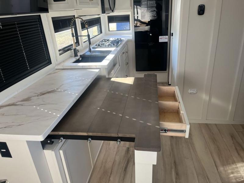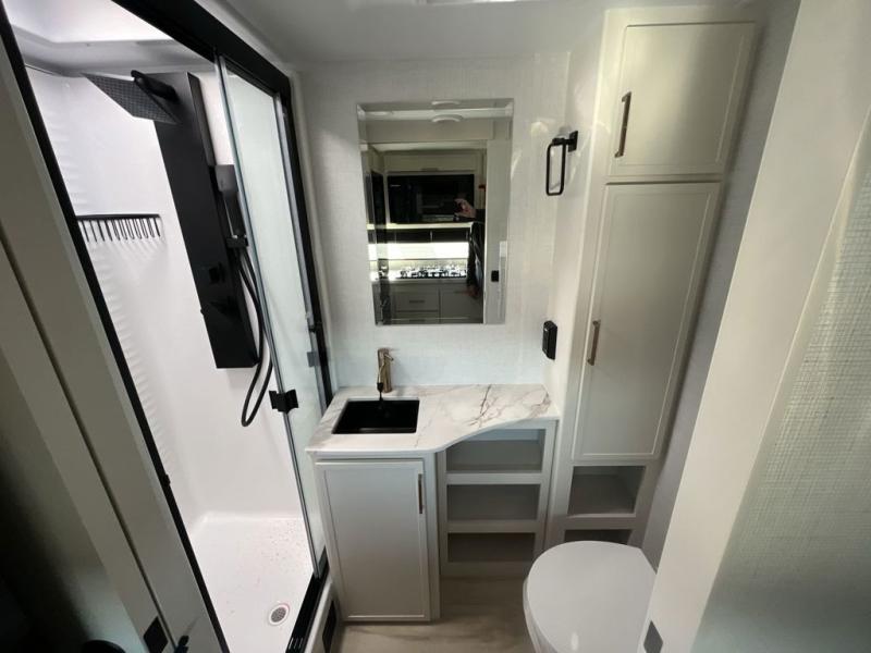 The Model Ix by Brinkley is your ticket to lightweight towing and exceptional features. This premium half-ton towable travel trailer features Brinkley's CraftSense building materials for a higher level of construction, along with a seamless laminated aluminum exterior with automotive grade full-body paint and modern graphics. You will stay powered up thanks to the power package with a 200-watt solar panel, and the Road Armor suspension will help provide a smooth tow from home to campground. The interior of the Model Ix includes premium residential cabinets with dovetail drawers, an ultra quiet and efficient A/C system, and a SoundCore Boom 2 Bluetooth waterproof speaker so you can listen to your favorite tunes indoors or outdoors!