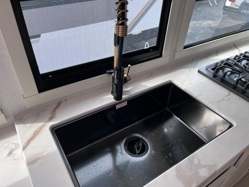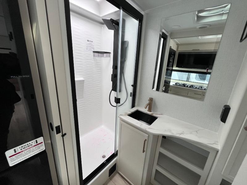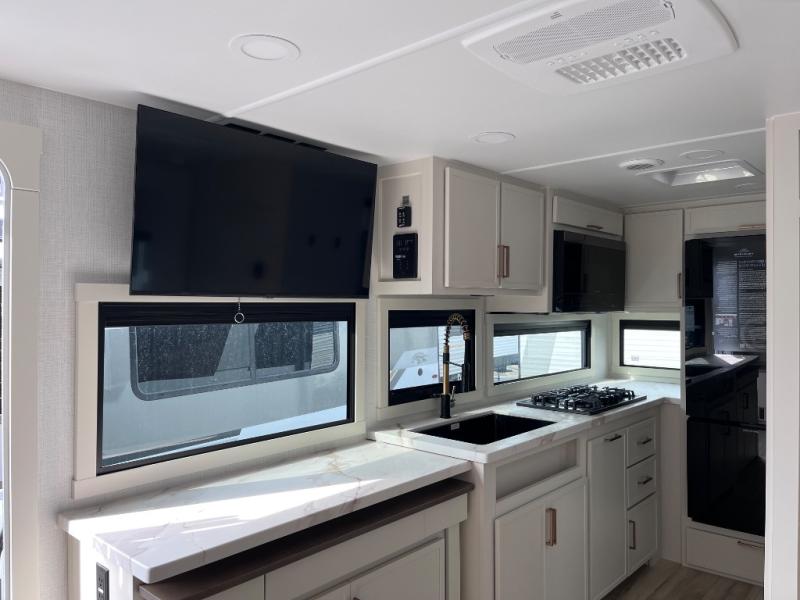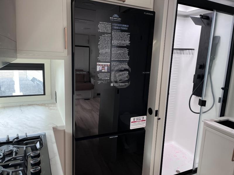 The Model Ix by Brinkley is your ticket to lightweight towing and exceptional features. This premium half-ton towable travel trailer features Brinkley's CraftSense building materials for a higher level of construction, along with a seamless laminated aluminum exterior with automotive grade full-body paint and modern graphics. You will stay powered up thanks to the power package with a 200-watt solar panel, and the Road Armor suspension will help provide a smooth tow from home to campground. The interior of the Model Ix includes premium residential cabinets with dovetail drawers, an ultra quiet and efficient A/C system, and a SoundCore Boom 2 Bluetooth waterproof speaker so you can listen to your favorite tunes indoors or outdoors!