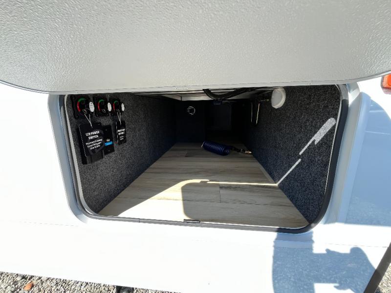 The Model Ix by Brinkley is your ticket to lightweight towing and exceptional features. This premium half-ton towable travel trailer features Brinkley's CraftSense building materials for a higher level of construction, along with a seamless laminated aluminum exterior with automotive grade full-body paint and modern graphics. You will stay powered up thanks to the power package with a 200-watt solar panel, and the Road Armor suspension will help provide a smooth tow from home to campground. The interior of the Model Ix includes premium residential cabinets with dovetail drawers, an ultra quiet and efficient A/C system, and a SoundCore Boom 2 Bluetooth waterproof speaker so you can listen to your favorite tunes indoors or outdoors!