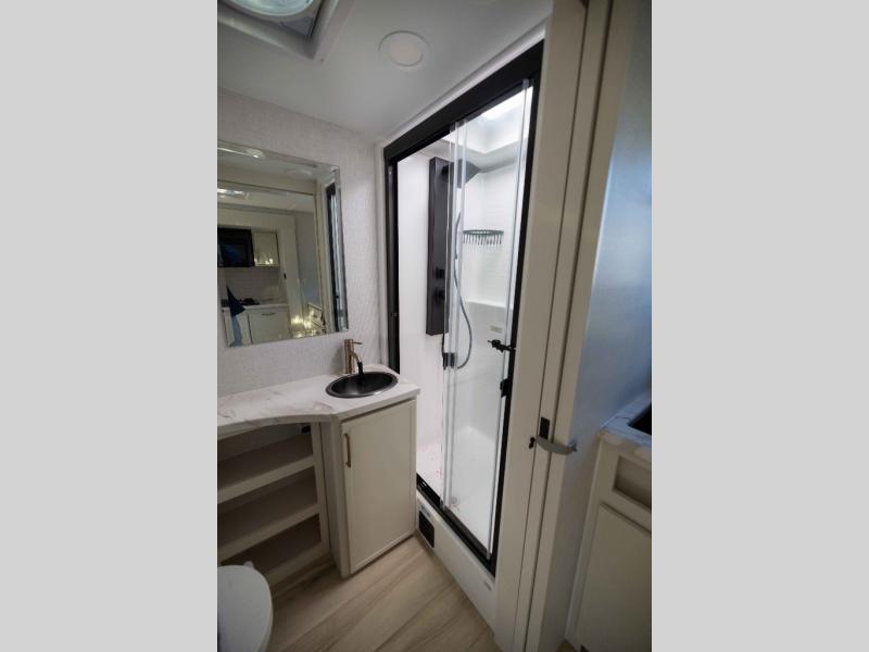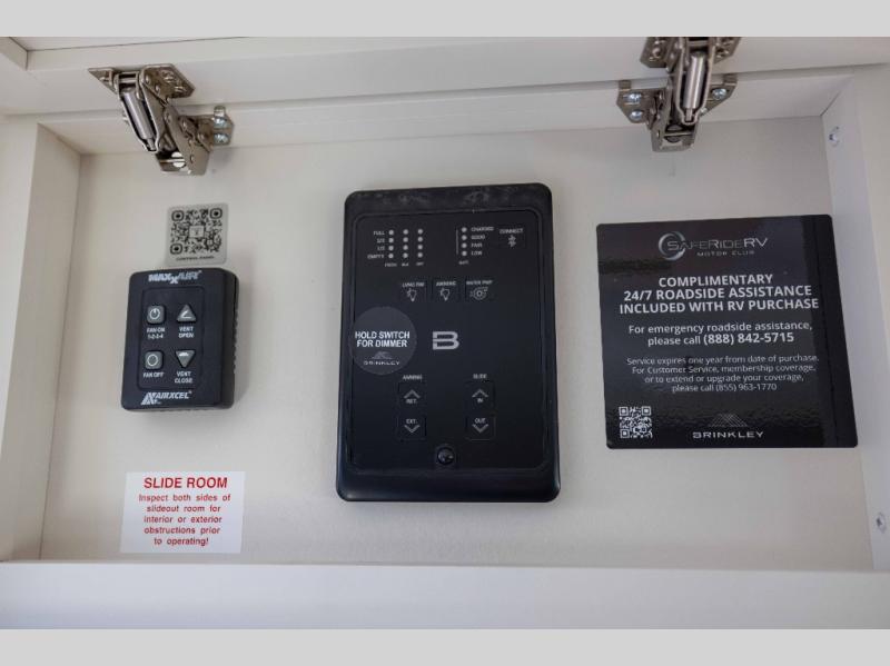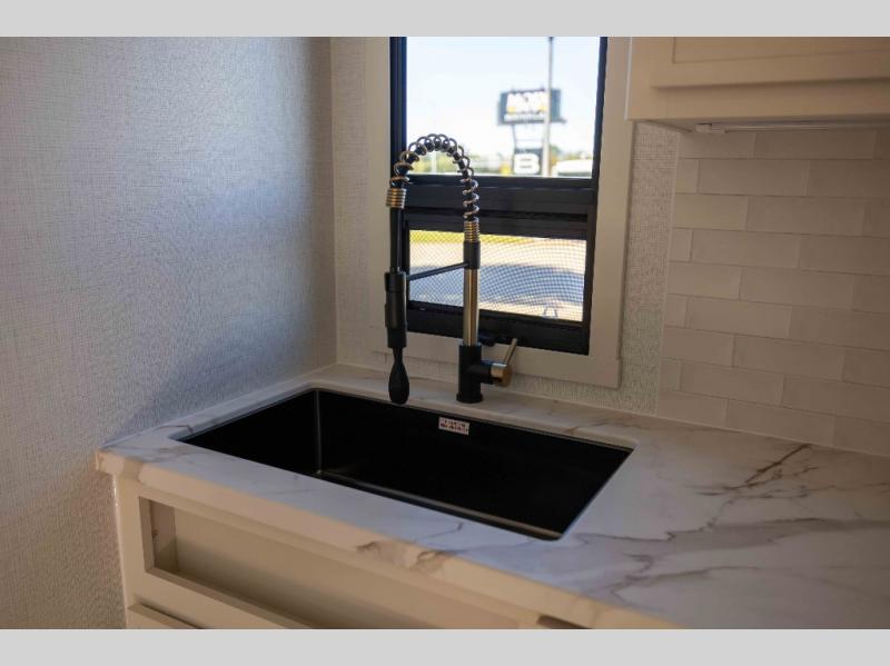The Model Ix by Brinkley is your ticket to lightweight towing and exceptional features. This premium half-ton towable travel trailer features Brinkley's CraftSense building materials for a higher level of construction, along with a seamless laminated aluminum exterior with automotive grade full-body paint and modern graphics. You will stay powered up thanks to the power package with a 200-watt solar panel, and the Road Armor suspension will help provide a smooth tow from home to campground. The interior of the Model Ix includes premium residential cabinets with dovetail drawers, an ultra quiet and efficient A/C system, and a SoundCore Boom 2 Bluetooth waterproof speaker so you can listen to your favorite tunes indoors or outdoors!