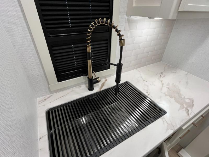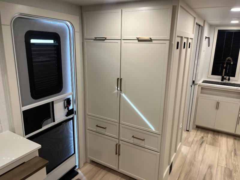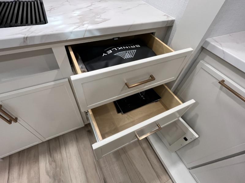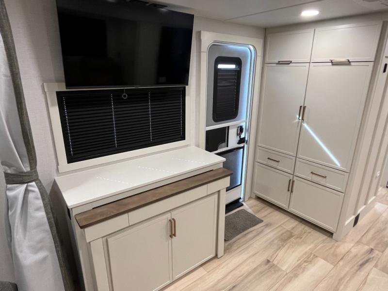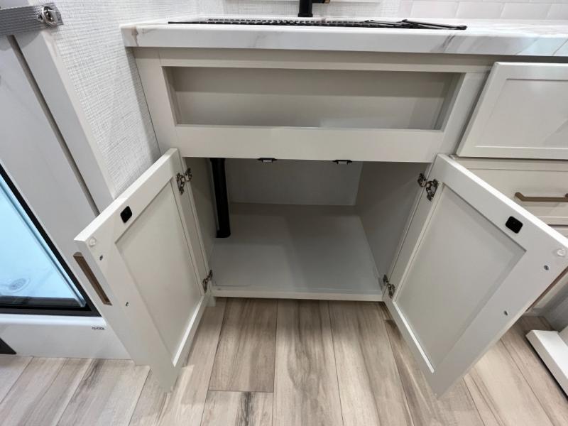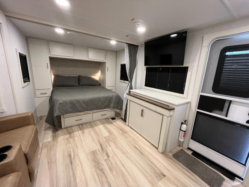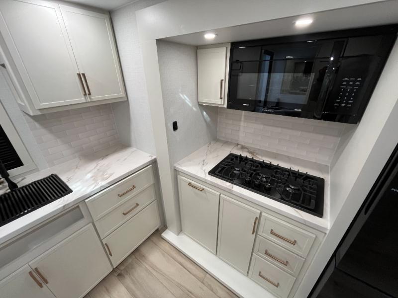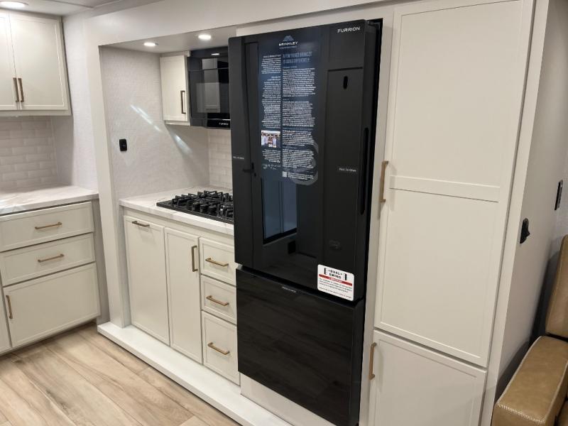 Brinkley Model I 23 Highlights: Modern interior design, residential-style kitchen, spacious bath, luxury finishes, and lightweight construction—premium comfort in a compact package!