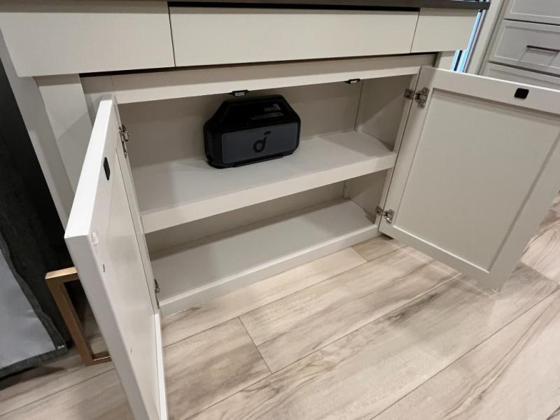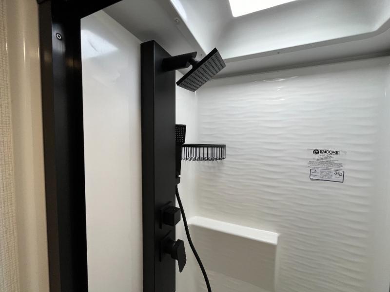 The Model Ix by Brinkley is your ticket to lightweight towing and exceptional features. This premium half-ton towable travel trailer features Brinkley's CraftSense building materials for a higher level of construction, along with a seamless laminated aluminum exterior with automotive grade full-body paint and modern graphics. You will stay powered up thanks to the power package with a 200-watt solar panel, and the Road Armor suspension will help provide a smooth tow from home to campground. The interior of the Model Ix includes premium residential cabinets with dovetail drawers, an ultra quiet and efficient A/C system, and a SoundCore Boom 2 Bluetooth waterproof speaker so you can listen to your favorite tunes indoors or outdoors!