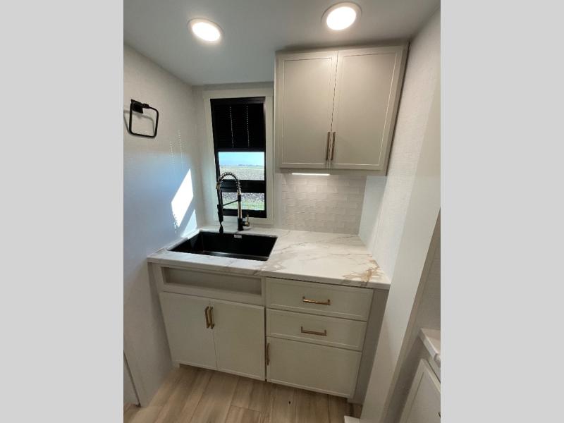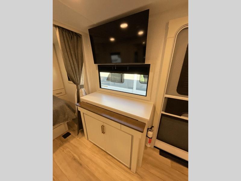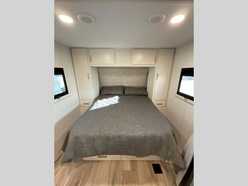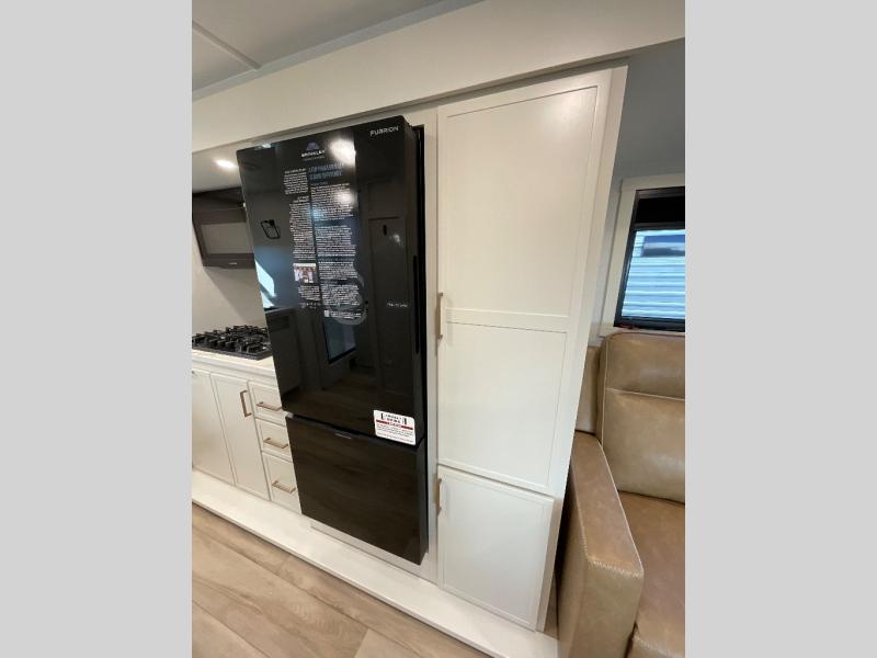 The Model Ix by Brinkley is your ticket to lightweight towing and exceptional features. This premium half-ton towable travel trailer features Brinkley's CraftSense building materials for a higher level of construction, along with a seamless laminated aluminum exterior with automotive grade full-body paint and modern graphics. You will stay powered up thanks to the power package with a 200-watt solar panel, and the Road Armor suspension will help provide a smooth tow from home to campground. The interior of the Model Ix includes premium residential cabinets with dovetail drawers, an ultra quiet and efficient A/C system, and a SoundCore Boom 2 Bluetooth waterproof speaker so you can listen to your favorite tunes indoors or outdoors!