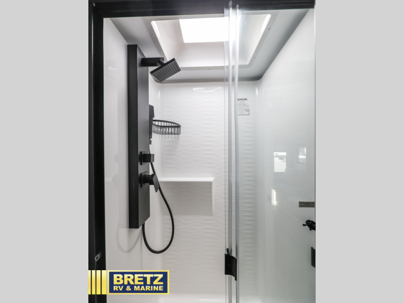 The Model Ix by Brinkley is your ticket to lightweight towing and exceptional features. This premium half-ton towable travel trailer features Brinkley's CraftSense building materials for a higher level of construction, along with a seamless laminated aluminum exterior with automotive grade full-body paint and modern graphics. You will stay powered up thanks to the power package with a 200-watt solar panel, and the Road Armor suspension will help provide a smooth tow from home to campground. The interior of the Model Ix includes premium residential cabinets with dovetail drawers, an ultra quiet and efficient A/C system, and a SoundCore Boom 2 Bluetooth waterproof speaker so you can listen to your favorite tunes indoors or outdoors!